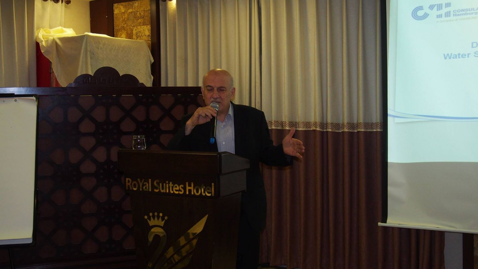 وقدم ممثل الشركة الاستشارية الألمانية "كونسول أكوا" تقييما عاما حول الوضع الفني والإداري والمالي لهذه الدائرة، مشيرا إلى أهم التحديات التي تواجه تقديم الخدمة أهمها: ضعف تحصيل رسوم الخدمة ، ارتفاع المصاريف التشغيلية لتزويد الخدمة، وتداخل العمل مع بقية الدوائر والأقسام في البلدية، مما يؤثر سلبا على تقديم الخدمة وغيرها من الصعوبات التي تواجه هذه الدائرة. كما استعرض الاستشاري عدد من الخطوات والآليات التي ستسهم في تحسين أداء خدمات المياه والصرف الصحي من خلال تطوير الإدارة المالية وتحقيق الشفافية وسهولة الوصول إلى المعلومات، وتحسين نسبة التحصيل من أجل تطوير العمل وتحسين الأداء العام لهذه الدائرة.