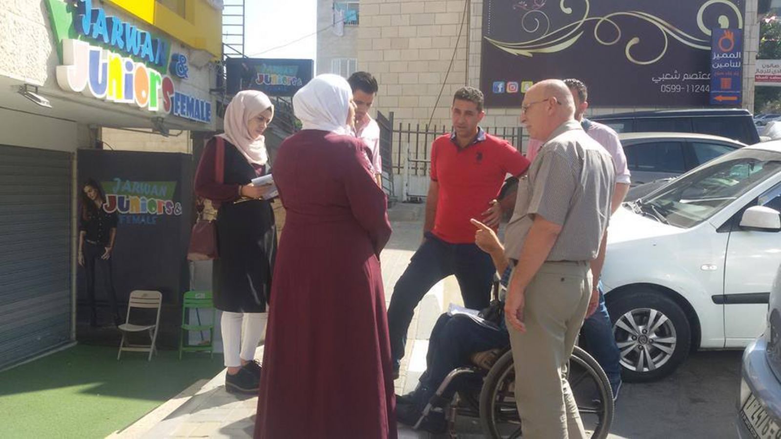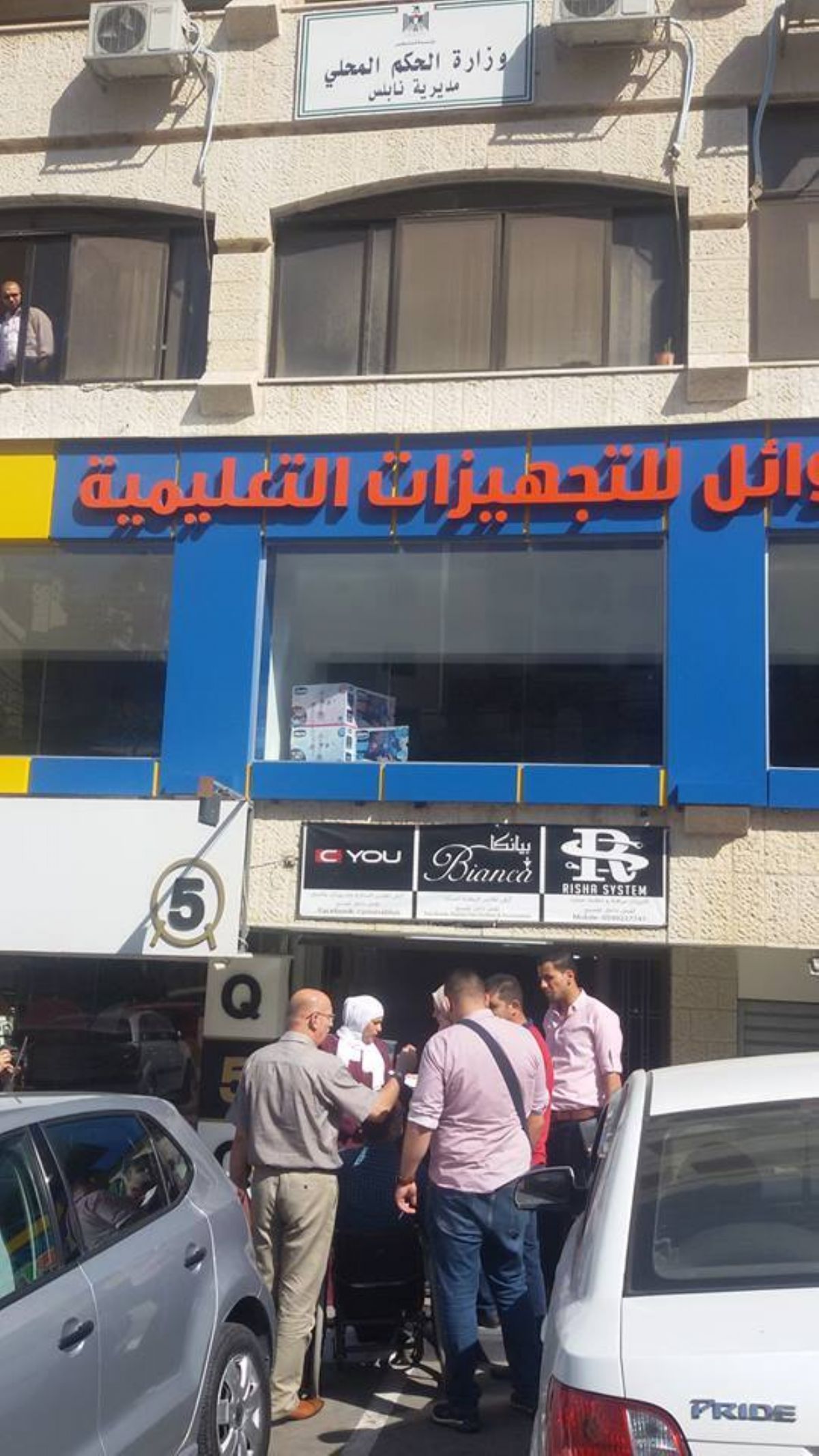 زار وفد من المؤسسات المشاركة بتنفيذ حملة محافظة نابلس صديقة لذوي الاعاقة مديرية الحكم المحلي – محافظة نابلس امس الاثنين 18—ايلول -2017 ، والتقى اعضاء الوفد بالسيد خالد اشتية مدير الحكم المحلي والاخت سمر قنعير والاخت حنين السيد ، وبعد انتظار لربع ساعة على الرصيف وتحت اشعة الشمس حضر ممثلي الحكم المحلي للقاء الوفد الذي بدورة رفض الصعود لاجراء اللقاء في مكتب المديرية كون المكتب يقع في الطابق الثاني في بناية غير مؤهلة لاستقبال ذوي الإعاقة والوفد يضم أشخاص ذوي إعاقة من مستخدمي الكراسي المتحركة.