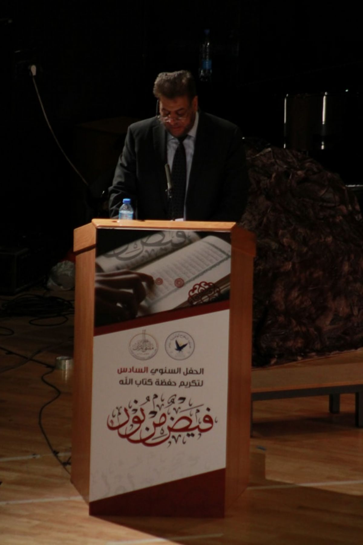 وافتُتح الحفل بأجواء دينية تمثلت بدخول الفوج المكرم من الطلبة الحافظين للقرآن الكريم وبتلاوة آيات عطرة من الذكر الحكيم.