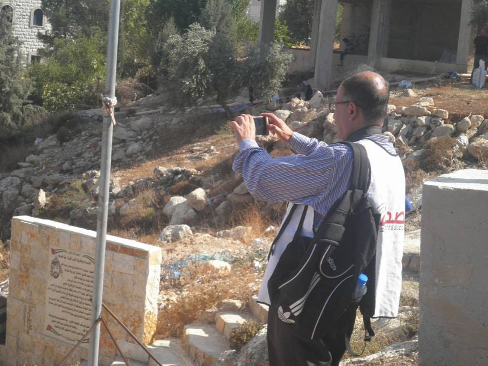 ثم انطلق الطاقم برفقة رئيس البلدية عوض حنني وعضو الفصائل سامي الزلموط إلى مغارة اختبأ فيها الرئيس الراحل ياسر عرفات ( أبو عمار ) وقدمو شرحا عن المغارة.