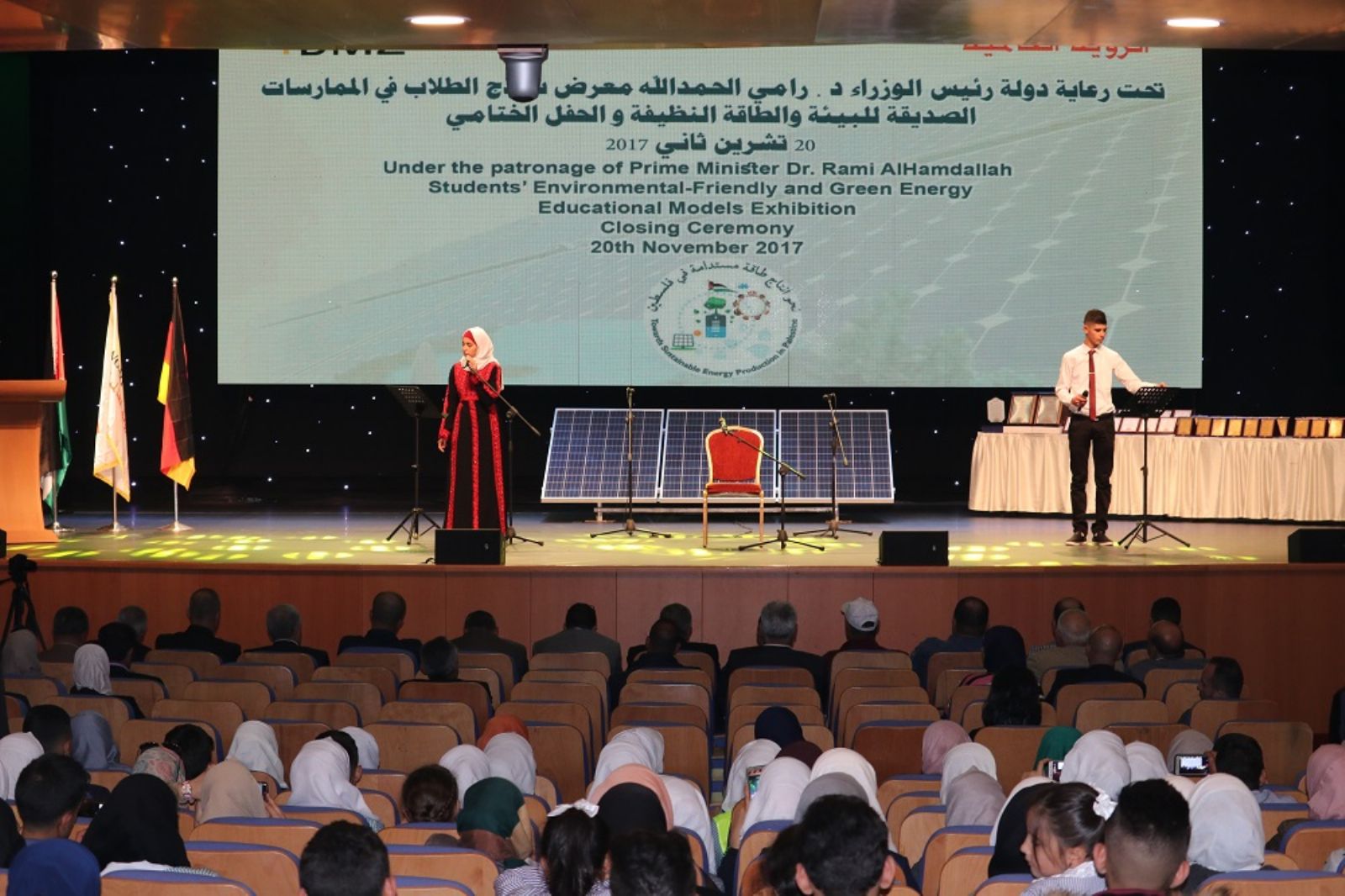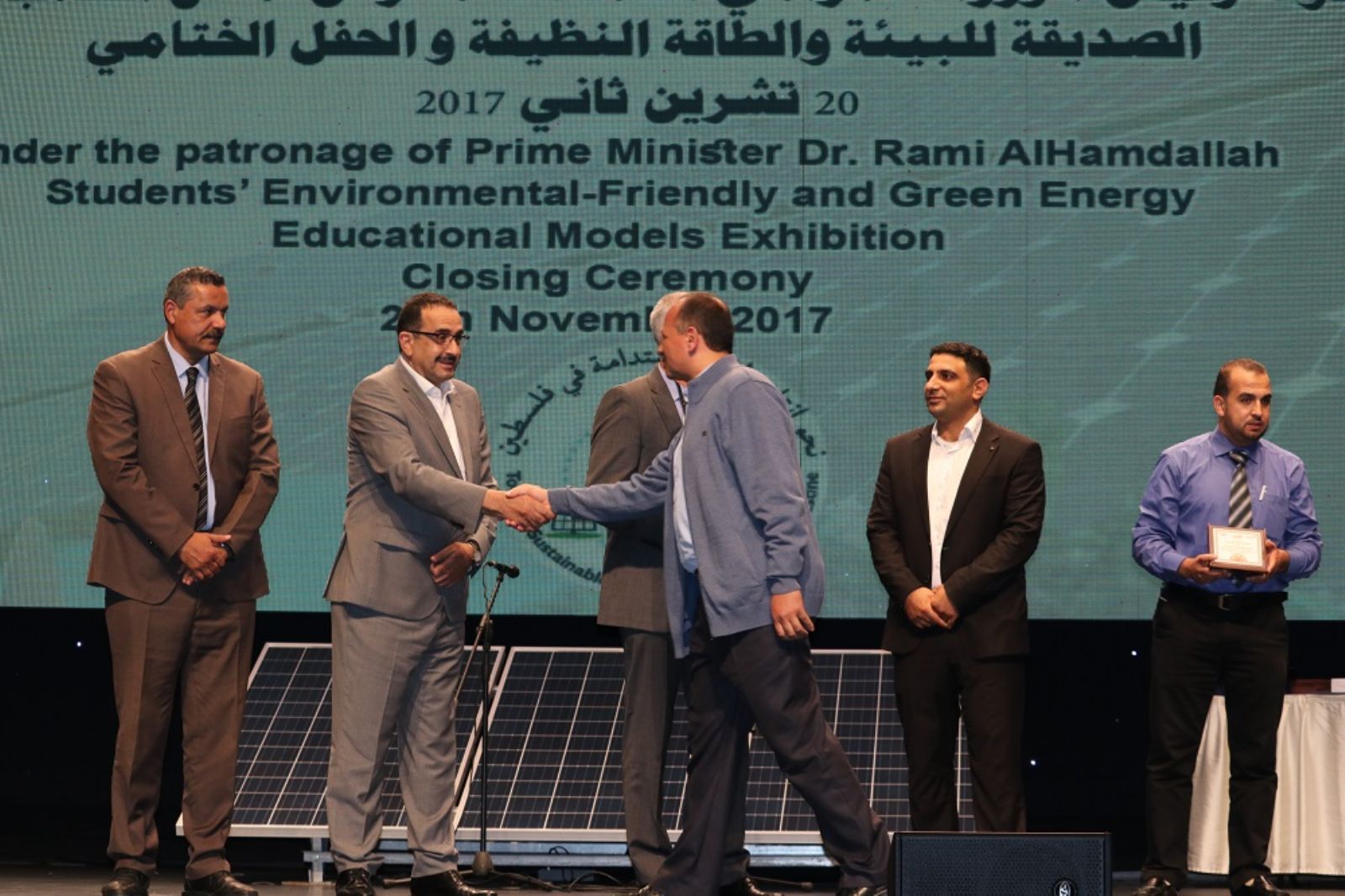 تحت رعاية رئيس الوزراء الدكتور رامي الحمد الله احتفلت الرؤية العالمية-القدس والضفة الغربية باقامة الحفل الاختامي لمشروع نحو انتاج طاقة مستدامة في فلسطين ومعرض نماذج الطلاب في الممارسات الصديقة للبيئة والطاقة النظيفة، بحضور ممثلا عن رئيس الوزراء المهندس ظافر ملحم رئيس سلطة الطاقة وديفيد بيرنل مدير الرؤية العالمية- القدس والضفة الغربية وباسم عريقات ممثل وزير التربية والتعليم والسيدة كنيديا والدكتور سامر الاحمد ممثل الاغاثة الزراعية وامجد الخراز ممثل سلطة البيئة ومدراء التربية والتعليم ومدراء المدارس المستهدفة.
