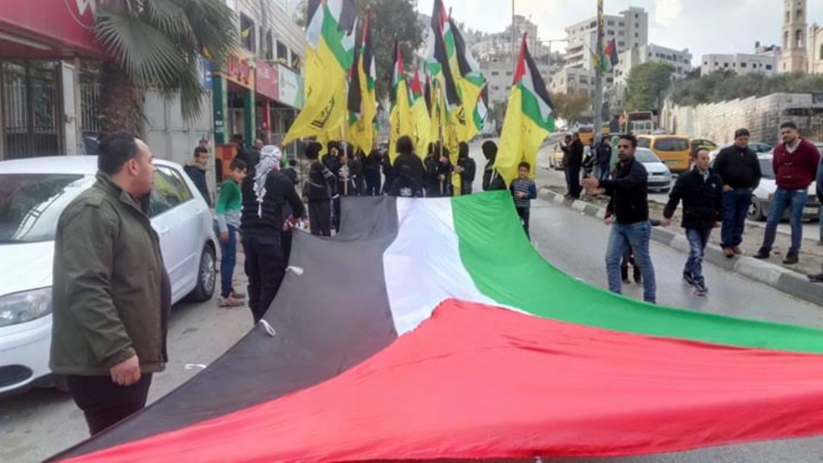 وقد نُظمت مسيرة شارك فيها أعضاء من المجلس الثوري لحركة "فتح"، وأعضاء الحركة في إقليم نابلس وحشد من المواطنين والشخصيات الفاعلة في المخيم، رفعت خلالها أعلام فلسطين ورايات الحركة، وجابت عدة شوارع في مخيم بلاطة، كما ألقيت كلمات خطابية أكد فيها المتحدثون على رفض القرار الأمريكي الصهيوني الأخير بحق القدس، مطالبين بضرورة تفعيل المقاومة الشعبية رفضا للقرار وتأكيداً على تمسك الشعب الفلسطيني بالقدس عاصمة أبدية لفلسطين.
