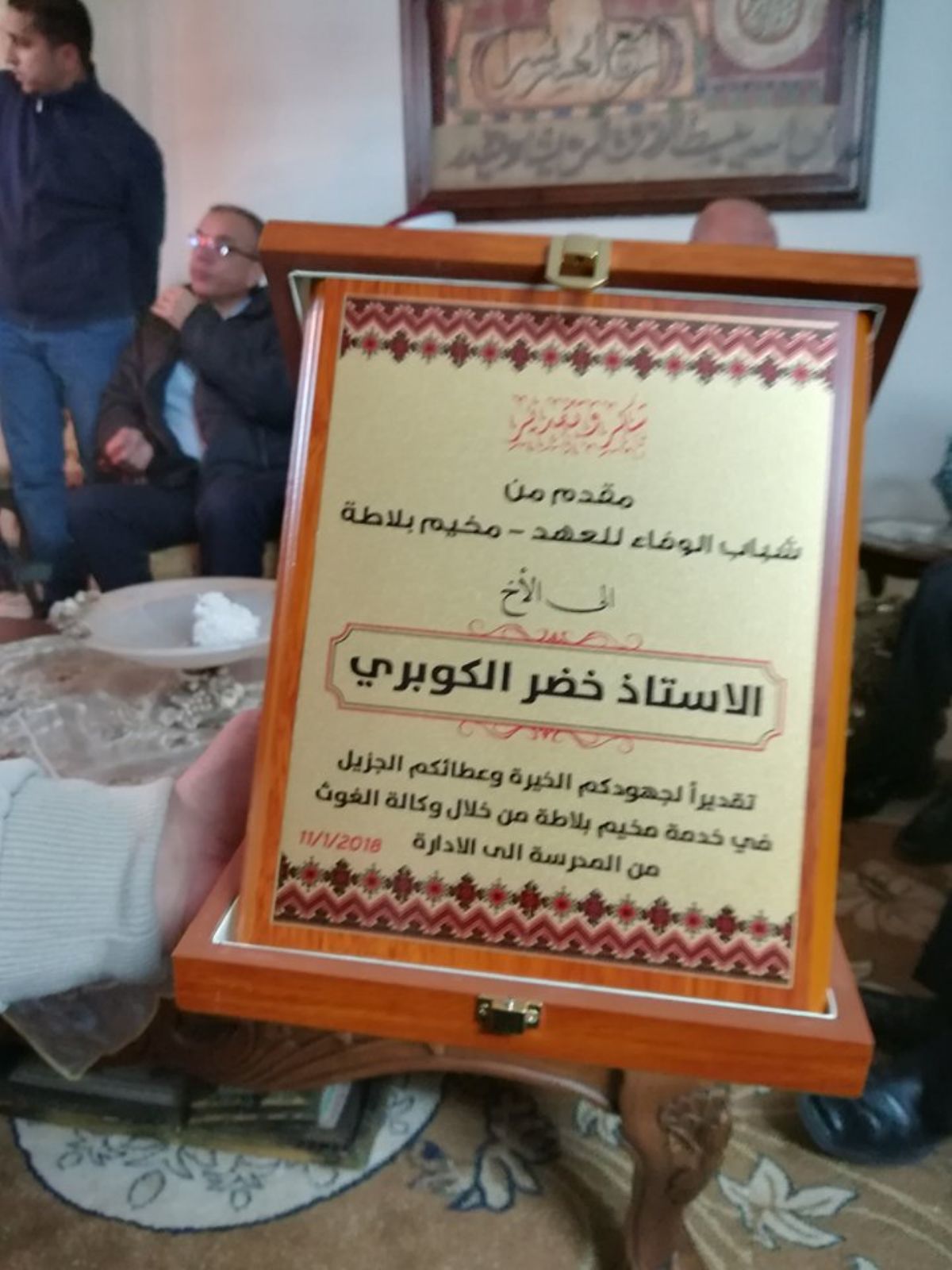 وحل وفد من مبادرة شباب الوفد للعهد ضيوفا على المربي خضر الكوبري الذي عمل مدرسا ومن ثم مديرا لمدارس مخيم بلاطة ثم مسؤولا عن منطقة وكالة الغوث في شمال الضفة، حتى تقاعد بعد سنوات طويلة من العمل كما كان مراقبا ومركزا للعمل الرياضي والاجتماعي في مركز شباب بلاطة.