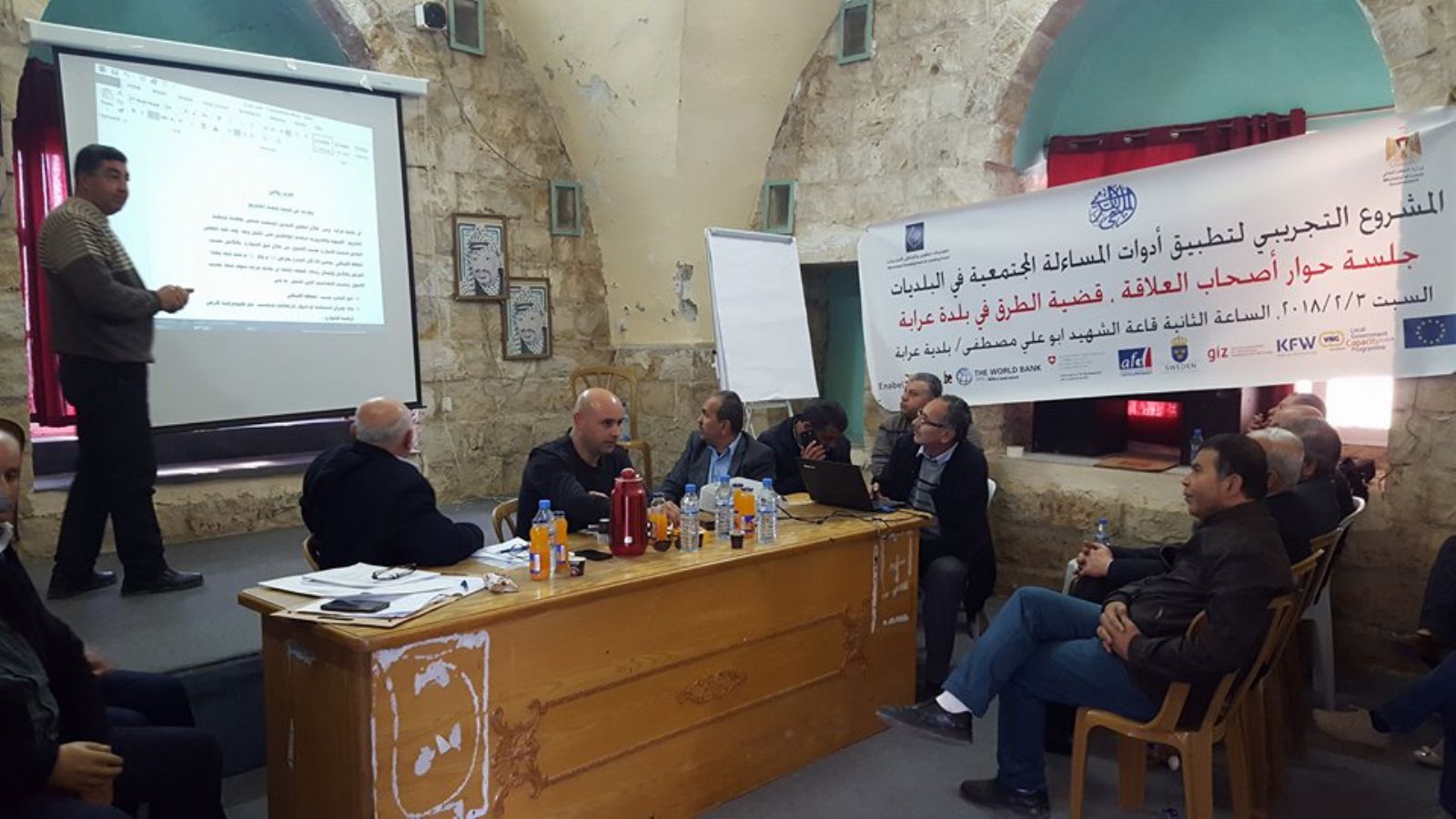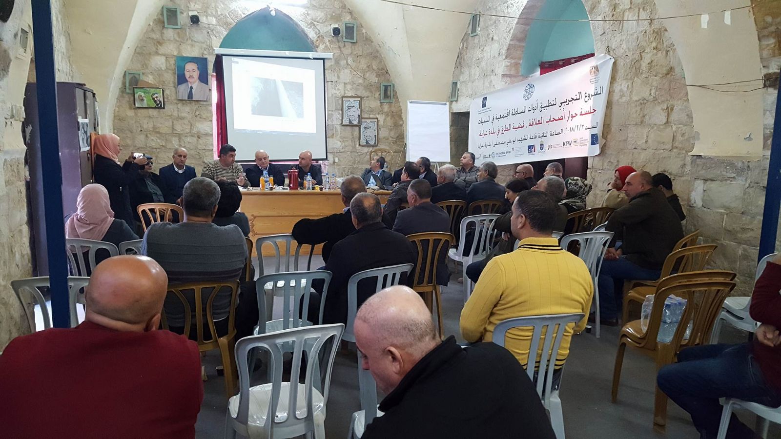 عقدت يوم امس جلسة مساءلة مجتمعية في بلدة عرابة، حيث تم عقد حوار اصحاب العلاقة لقضية الطرق، وذلك في قاعة الشهيد ابو علي مصطفى في البلدية، بدعوه من لجنة المساءلة المجتمعية في البلدة.