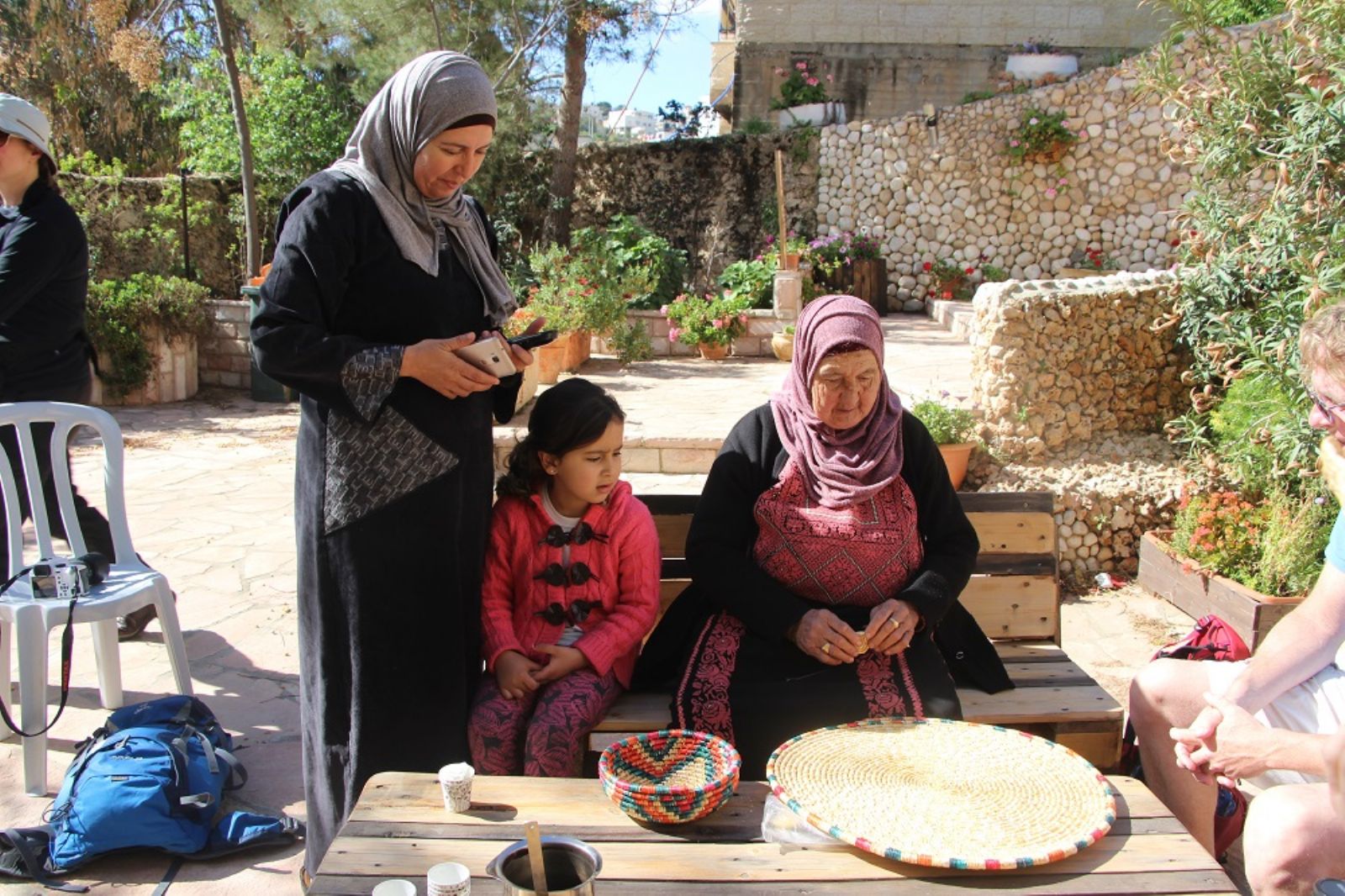 وتقول مسعدة "السياح نوعين نوع فقط يمر من الجمعية دون المبيت بأحد بيوت الراحة والضيافة ومنهم من يفضل المبيت وغالبا من يتم توزيع السياح على البيوت التابعة للجمعية القائمة بنفس العمل, فيتم أستقبالهم وضيافتهم بالجود والاصالة والحديث معهم وتبادل الثقافات وأعطائهم الصورة الصحيحة عن المرأة الفلسطينية, وعن الشعب الفلسطيني, لان جزء من الاعلام لا ينقل الصورة الصحيحة عن الشعب الفلسطيني, فعند زيارتهم لبلادنا وقرانا ويتم الاختلاط بيننا وبينهم يتعرفون على الحباة في فلسطين وكيف يعيش الناس فيها, فهذا شي ايجابي لنقل الصورة الجميلة عن فلسطين وناسها.