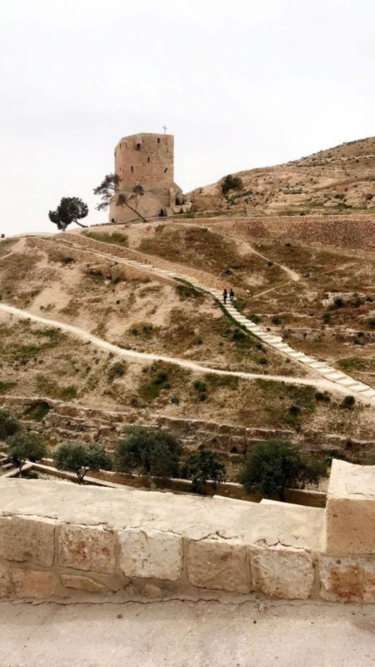 وتجد قلعة يطلق عليها جوستنيان كانت نقطة عسكرية تحمي الدير بأكمله, ومما يميز دير مار سابا أنه في أسفله نبع ماء صغير وأيضا نخلة, وبعض الروايات المسيحية تشير إلى إن السيد المسيح ولد هنا بسبب الماء والنخلة, وفي القرآن تشير التفسيرات الاية القرانية (اتخذت مكانا شرقيا) شرق المسجد الأقصى وهو المكان الشرقي لقبة الصخرة مباشرة.