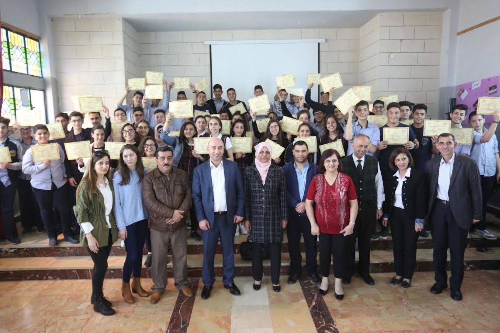 وفي بداية الحفل رحبت مديرة المدرسة عبير كسبري بادارة المشفى الانجيلي العربي وعلى رأسهم الدكتور القرة ، مقدمة الشكر على هذه المبادرة المهمة لنشر ثقافة الاسعاف الاولي والتثقيف الصحي بين الطلبة خاصة ان المشروع حقق هدفه الكبير وظهرت نتائجه.