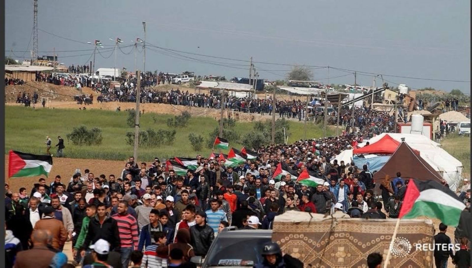 ويقمع الجيش الإسرائيلي هذه الفعاليات السلمية بالقوة واستهدف المدنيين بدم بارد، ما أسفر استشهاد 21 فلسطينيًا، وإصابة 1500 آخرين برصاص قوات الاحتلال، منذ الجمعة الماضي.