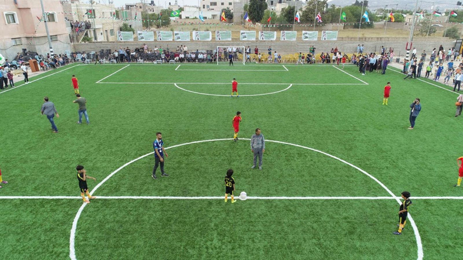 واختتم الحفل بمباراة ودية بين فريقي أطفال جرى بعده توزيع الجوائز على اللاعبين.