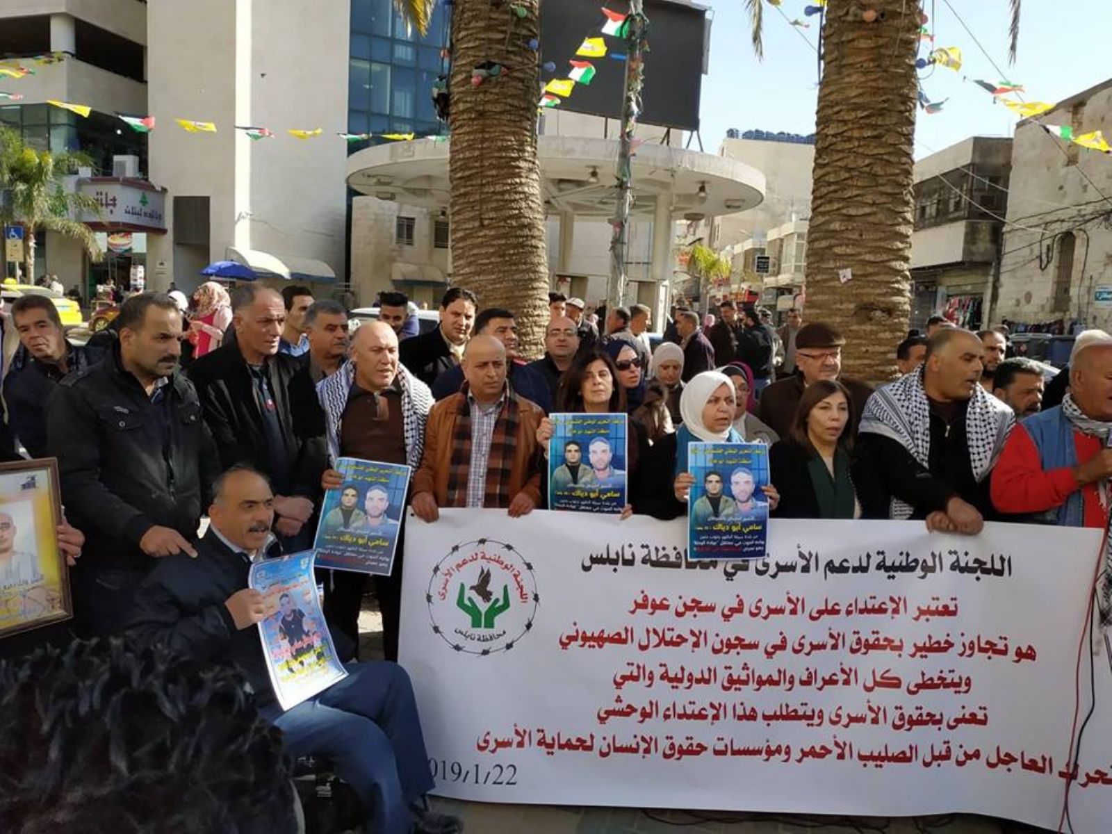 نظمت اللجنة الوطنية العليا لدعم ومساندة الاسرى في محافظة نابلس صباح يوم الثلاثاء على دوار الشهيد وسط مدينة نابلس وقفه تضامنية مع الأسرى في سجن عوفر ومع الاسير سامي ابو دياك.