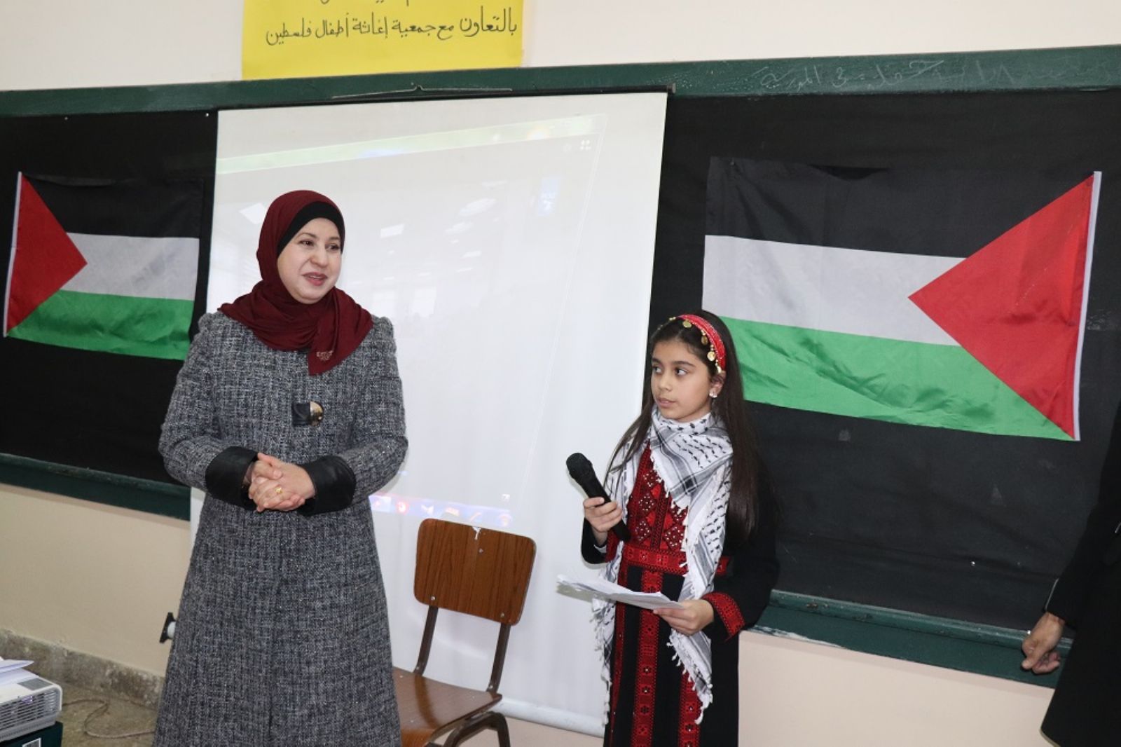 وبدأ الحفل الذي تولت عرافته الطفلة وفاء فطاير بالقران الكريم ثم الوقوف للسلام الوطني ثم رحبت مديرة مدرسة عبد اللطيف هواش وفاء البسطمي بالحضور مقدمة الشكر لجمعية اغاثة اطفال فلسطين على هذا الدعم للمشروعين، كما شكرت تعزيز ودعم مديرة التربية صوالحة للمدرسة ورفدها لالبات التطوير والتميز,