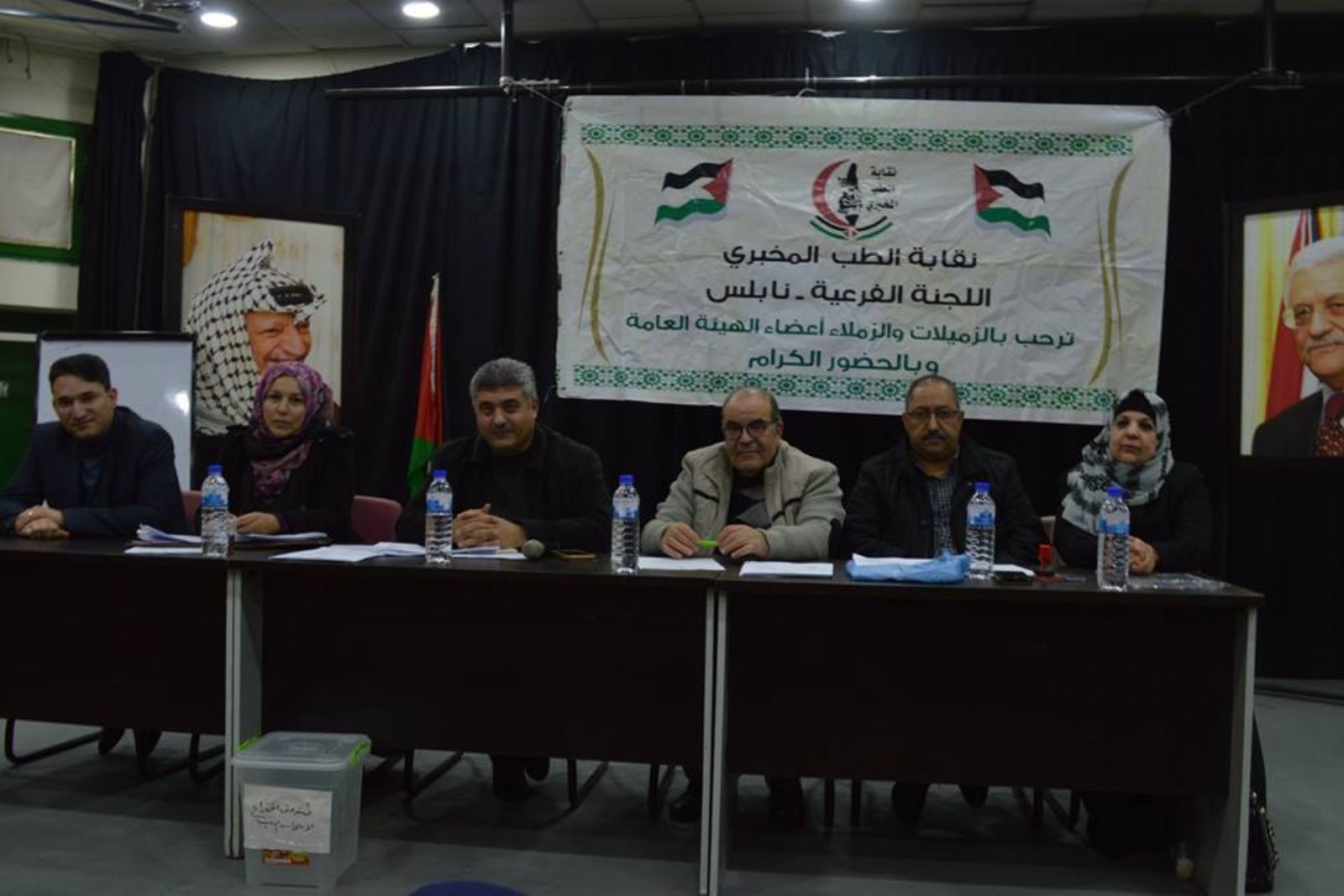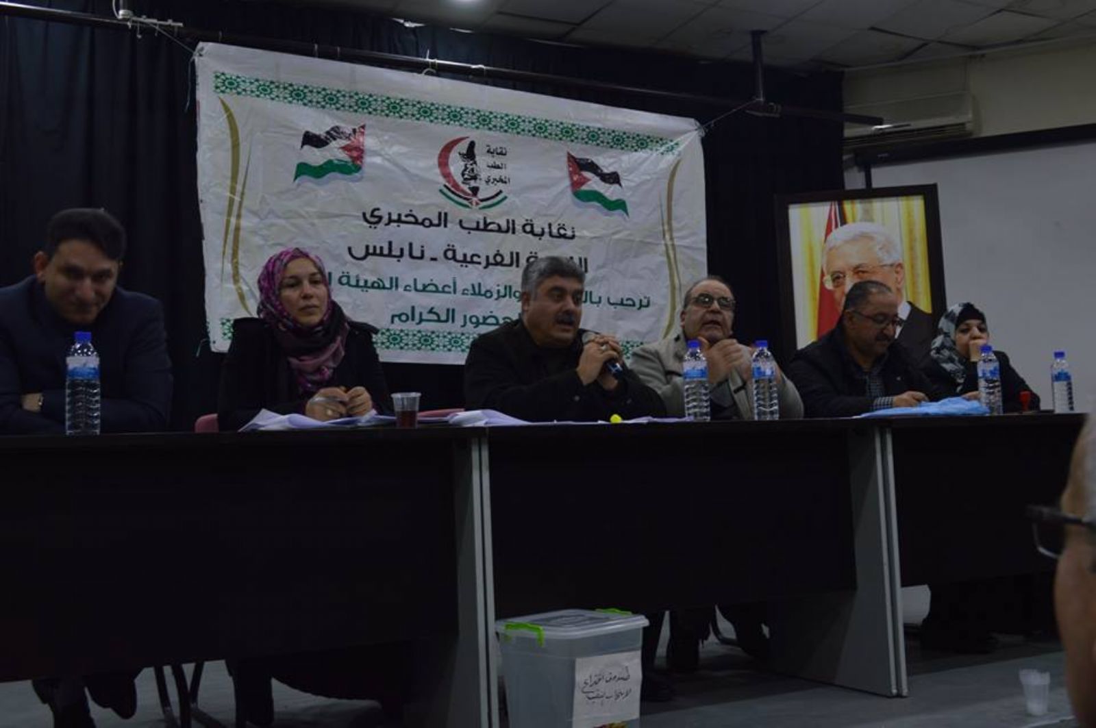 وكانت الهيئة العامة لنقابة الطب المخبري في محافظة نابلس قد عقدت اجتماعها السنوي في قاعة مركز حمدي منكو التابع لبلديه نابلس اليوم الجمعه الموافق 15/2/2019 وذلك بحضور لجنة الاشراف المشكله من شيرين اشتيوي ممثلة وزارة العمل ومن الهيئة العامة د.كمال ضميدي رئيسا وعضويه د.اسماعيل المصري وجمعه حشاش ومنتهى الطحان وجويريه سالم وحضور د. رامز دويكات مدير مديريه صحة نابلس كما وحضر جلسة الافتتاح جهاد رمضان أمين سر حركة فتح – إقليم نابلس ومي قرادة عضو لجنة الإقليم والمكتب الحركي للطب المخبري . وابتدأ اجتماع الهيئة العامة بالتحقق من النصاب القانوني ثم تليت آيات عطرة من الذكر الحكيم قرأها محمد الجنيدي ثم السلام الوطني الفلسطيني وقراءة الفاتحة على أرواح الشهداء . وفي كلمة اللجنة الفرعية وجه محب ابو زنط رئيس اللجنة الشكر للأعضاء على دعمهم والتفافهم حول النقابة كما قدم عرضا سريعا لانجازات النقابه خلال الدورة السادسه (دورة الشهيد زياد ابو عين ). كما والقى د.رامز دويكات مدير الصحة كلمة حيا فيها النقابة وهذا العرس الديمقراطي مؤكدا على الشراكة بين وزارة الصحة والنقابات المهنيه .كما وقدمت عبير عناب التقرير الإداري لعمل النقابة خلال الأربع سنوات موضحة أنشطة النقابة الاجتماعية والمهنية والطبية والوطنية ومتابعة حقوق الأعضاء وخاصة في القطاع الخاص والأهلي وكذلك افتتاح مقر دائم للنقابة والمساهمة في دعم العاطلين عن العمل . كما قدم محب ابو زنط التقرير المالي المركزي والمحلي والمتمثل ببيان المقبوضات والمصروفات والرصيد الحالي وموجها الشكر لكل المؤسسات والشركات التي رعت انشطة النقابة المختلفه كما وقدم عامر الكاشف تقريرا ماليا عن صندوق التكافل الاجتماعي وأنشطته.ثم فتحت لجنة الاشراف النقاش حول التقارير المقدمة وجرى بعدها إقرار التقريرين الاداري والمالي وبالانتهاء من تقارير اللجان قدم فايز الزاغه استقالة الهيئة الاداريه للنقابة عن الدورة السادسه موجها الشكر للجميع وللجنة الإشراف كما نقل تحيات عنان الاتيره نائب محافظ محافظة نابلس والمهندس عدلي يعيش رئيس البلديه ود. المهندس سامي حجاوي رئيس تجمع النقابات المهنيه والذين تمنوا النجاح للنقابة في كل أوجه عملها .