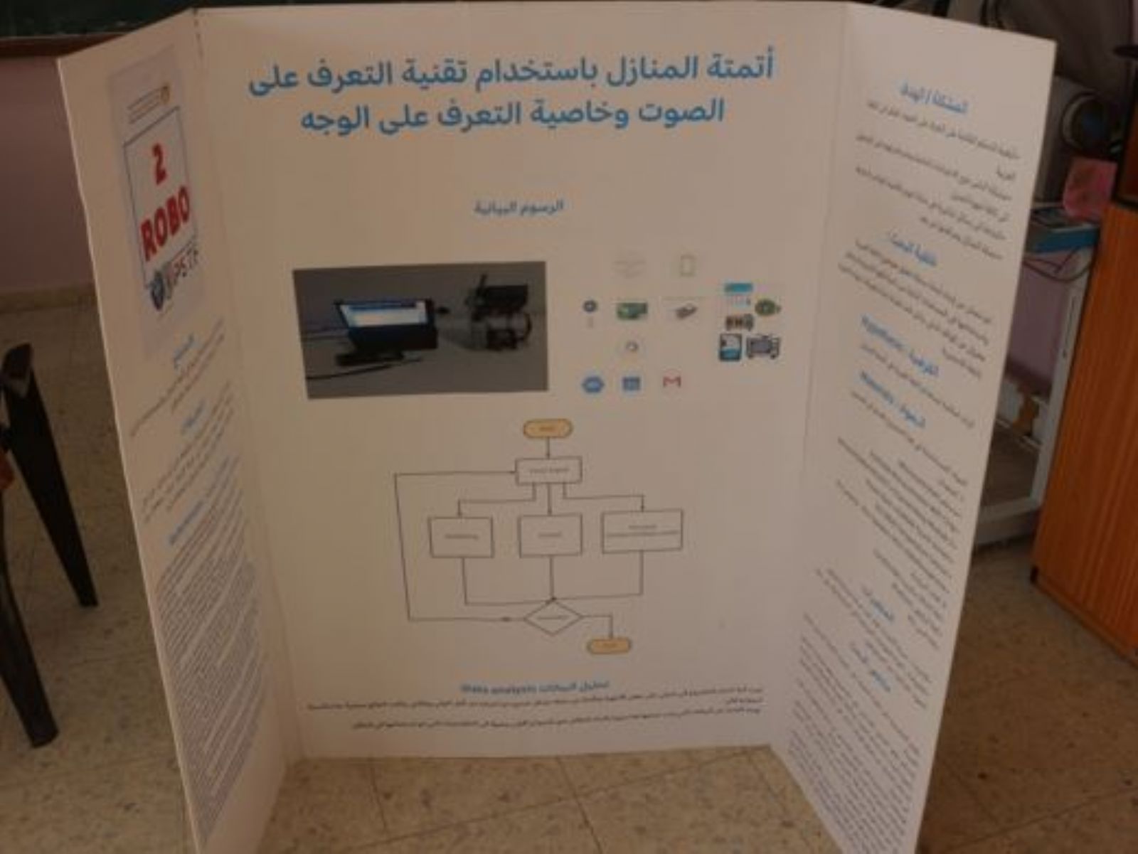 أمّا بخصوص مكونات الاختراع تقول عودة أن الجهاز يتكون من ثلاثة أقسام وهي قسم التحكم بأجهزة المنزل، وكاميرا التعرف على الوجه لتنفيذ الأوامر من خلال بصمة الوجه، إن لم تكن البصمة صحيحة يقوم الجهاز بتصوير وجه الشخص الذي حاول دخول المنزل و إرسال الصورة للبريد الإلكتروني لصاحب المنزل، وأيضا يحتوي على قسم المراقبة العامة ( درجة حرارة الغرفة والماء، طقس فلسطين بشكل عام )، وأخيرا قسم متابعة البريد الإلكتروني والمواعيد الشخصية حيث يقوم بقراءة صندوق البريد وتذكير صاحب المنزل بمواعيده.