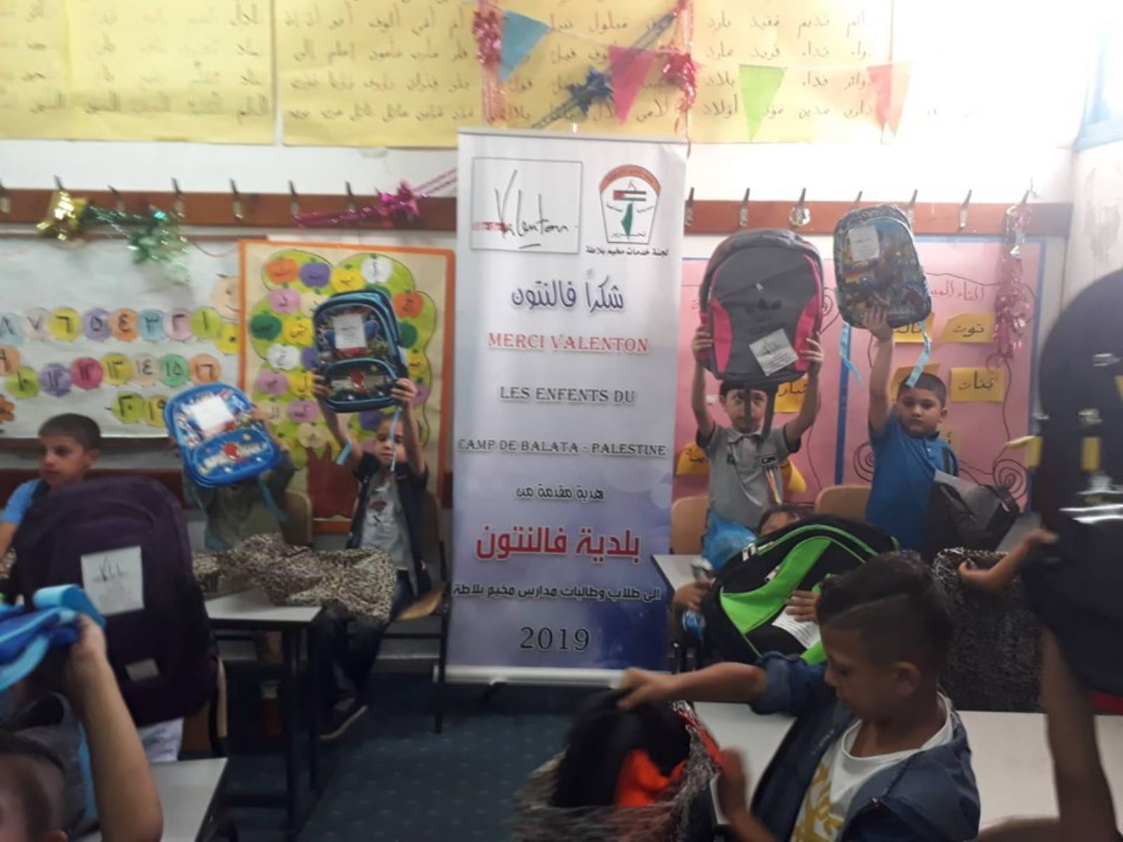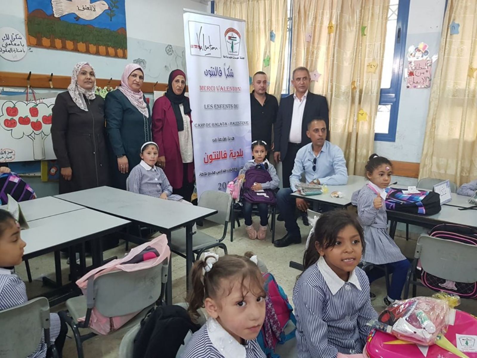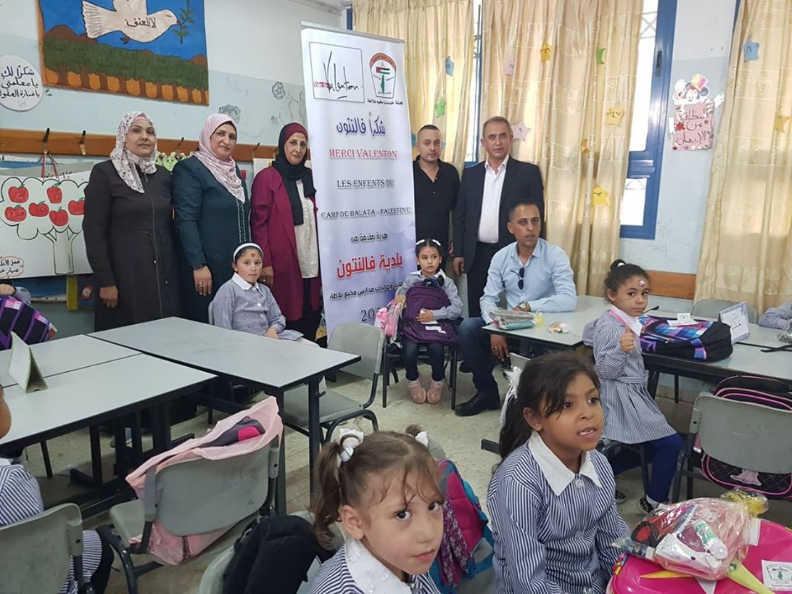 وقدم ذوقان شكره للسيدة فرانسوا رئيسة بلدية فالنتون ولكافة أعضاء المجلس البلدي لبلدية فالنتون الفرنسية التي تم إبرام اتفاقية توأمة بينها وبين مخيم بلاطة على دعمهم لمشروع الحقيبة المدرسية .
