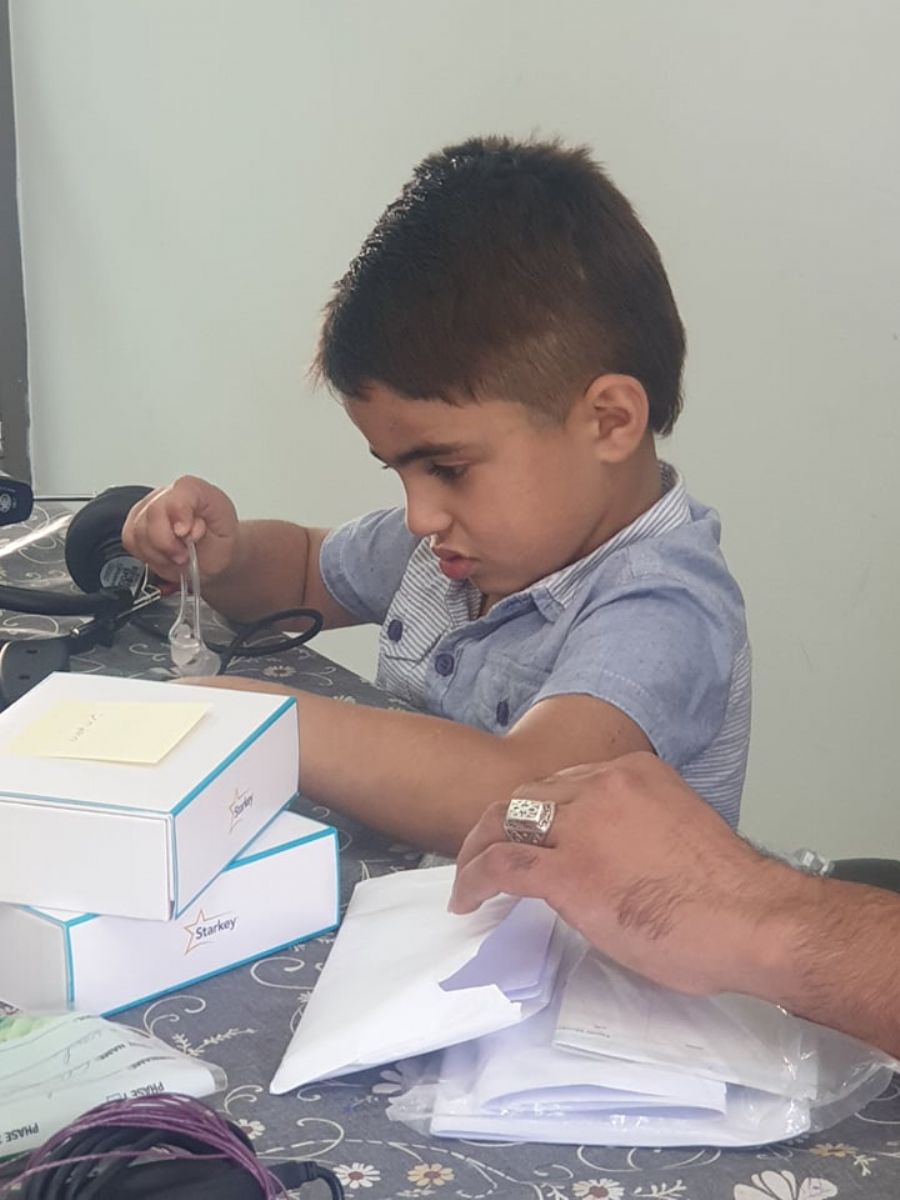 لمجموعة من الاطفال الذين يعانون من مشكلات سمعية حيث تم عمل فحوصات وتركيب عظمات وسماعات طبية ل ١٤ طفلا من لاجئي منطقة الشمال ، بتنظيم من برنامج الاعاقة وقسم الصحة في وكالة الغوث وياتي ذلك من ضمن البرامج التي تنفذها وكالة الغوث لمساعدة الاطفال والعائلات المحتاجة من اللاجئين الفلسطينيين.
