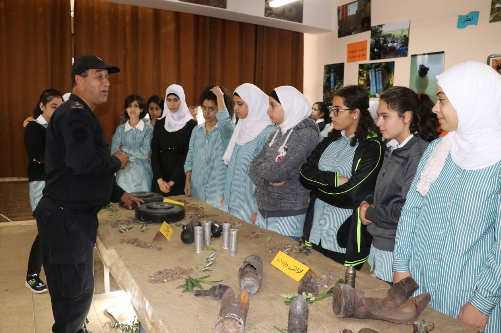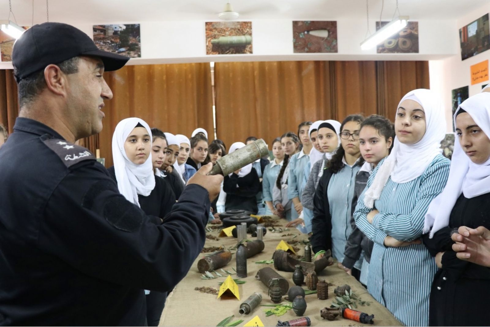 واضافت ان الهدف من تنظيم المعرض لتعزيز الوعي لدى الطلاب والمواطنين حول مخاطر الألغام والأجسام المشبوهة، ومن أجل حماية المواطنين والحفاظ على سلامتهم وأراوحهم، وصولا إلى مجتمع آمن ومستقر وبعيد عن الأخطار والمشاكل الأمنية.