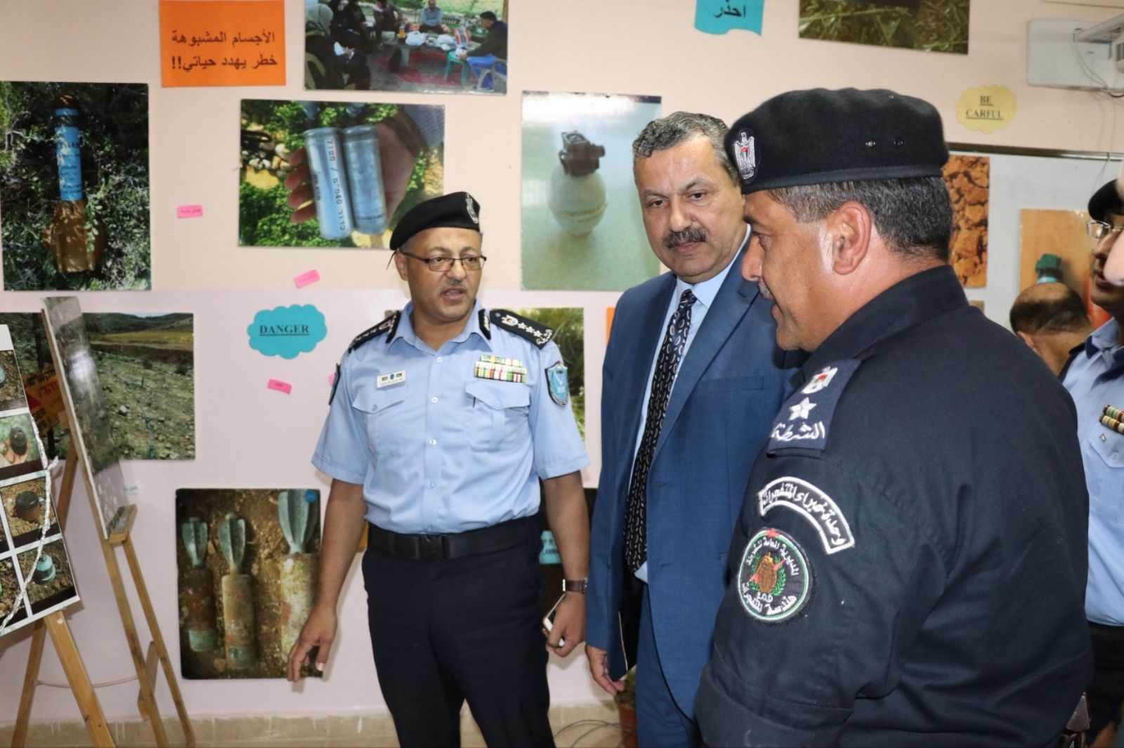 وأشار الاستاذ عريقات الى إن تعاون الجمهور مع الشرطة، يسهم بقوة في التقليل من حوادث الإصابات بالألغام، داعياً المواطنين إلى تبليغ الشرطة والجهات الأمنية المختصة، في حال العثور على أجسام مشبوهة، وذلك حتى تتمكن الشرطة من التعامل معها ومعالجتها.