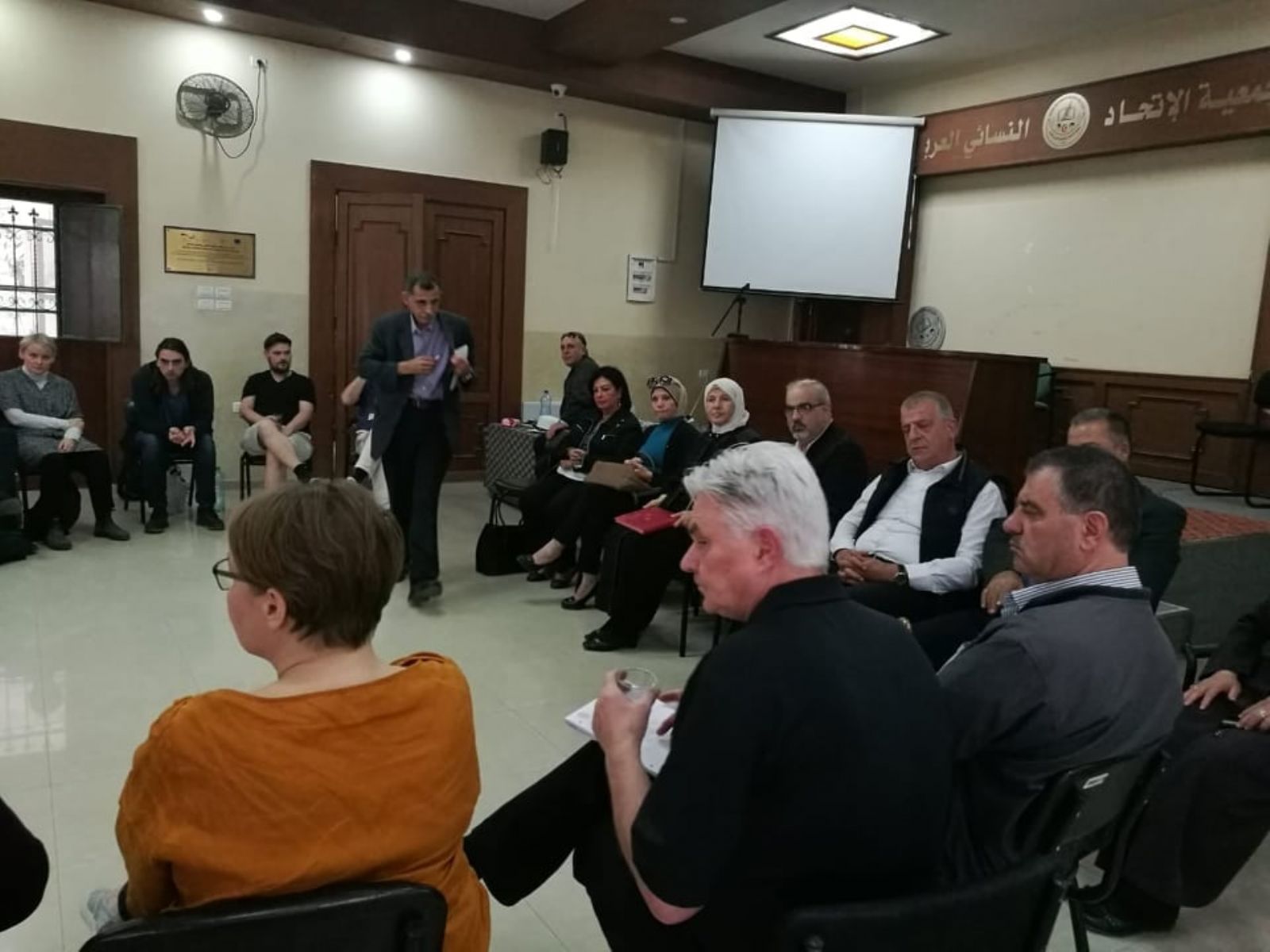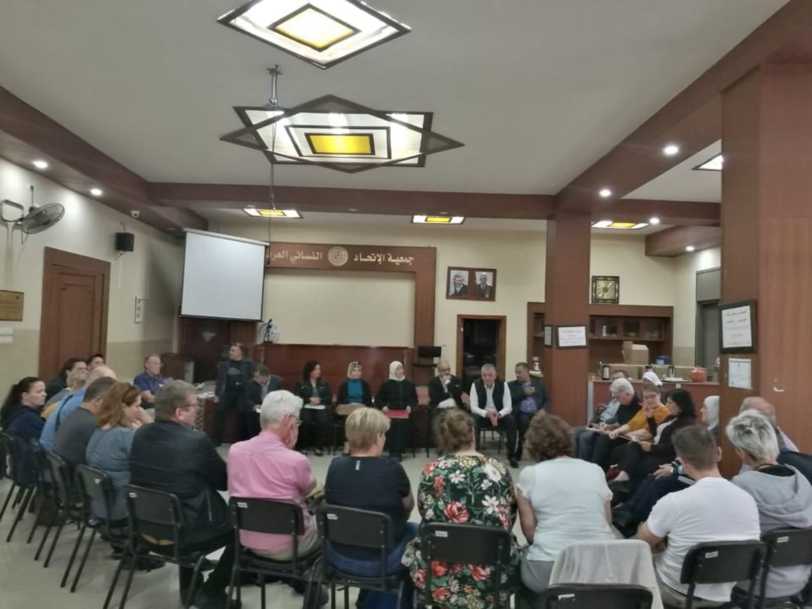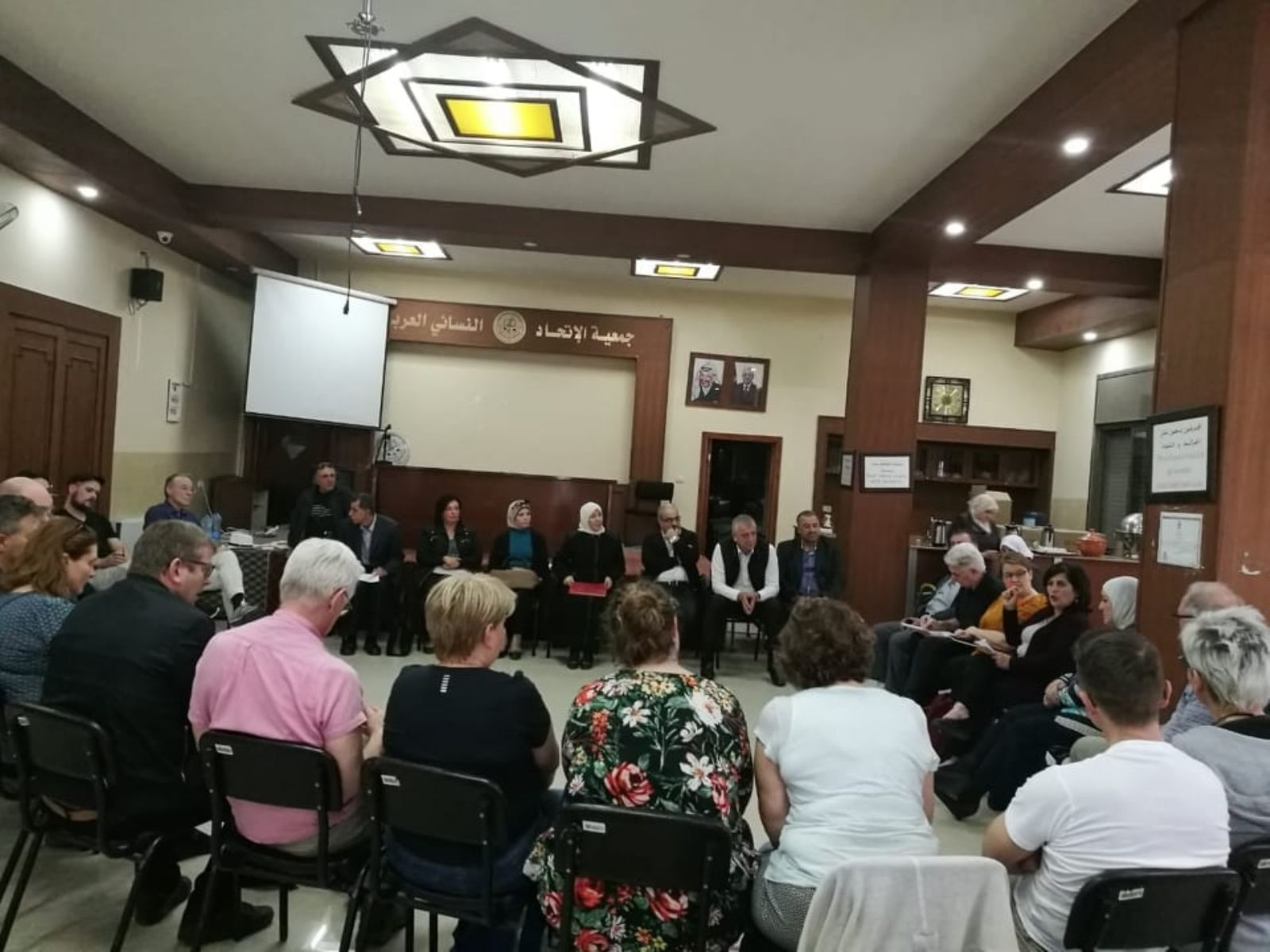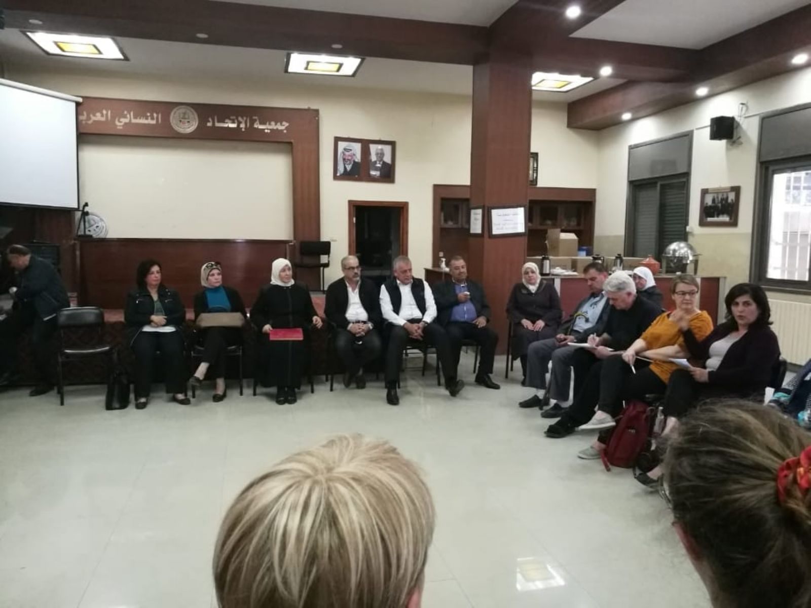نابلس :- استقبل تجمع مؤسسات المجتمع المدني في محافظة نابلس اليوم الاربعاء 30/10 في مقر جمعية الاتحاد النسائي العربي وفدا من اتحاد نقابات العمال في ايسلندا ضم امين عام الاتحاد وأعضاء من مختلف النقابات العماليه هناك . وكان في استقبال الوفد عدد من ممثلي تجمع مؤسسات المجتمع المدني في المحافظة . ورحبت رئيسة جمعية الاتحاد النسائي العربي عهود يعيش قناديلو بالحضور كما قدمت نبذة تاريخيه عن الجمعية والتي تأسست في العام 1921 كأول جمعية نسويه تعنى بشؤون المرأة كما قدمت شرحا وافيا عن المراكز والمؤسسات التابعه لهل وأهمها مستشفى الاتحاد النسائي ومركز اليتيمات والكفيفات وكليه الحاجه عندليب العمد لتعليم التمريض وغيرها من المؤسسات . كما ورحب منسق التجمع سامر عنبتاوي بالوفد الذي ضم اكثر من 20 شخصيه نقابيه من ايسلندا وقدم شرحا عن دور تجمع مؤسسات المجتمع لمدني وما يقوم به في جميع الاصعدة سواءا الوطنيه او الاجتماعية ودوره في مع المؤسسات الاخرى في تبني مصالح المواطنين من خلال عمله كتجمع مدني كما قدم شكره للوفد على هذه الزيارة التضامنية مع الشعب الفلسطيني . ومن ناحية اخرى قدم ممثلو تجمع مؤسسات المجتمع المدني تعريفا بكل مؤسسة يمثلونها سواءا نقابيه مهنيه او اجتماعيه او اقتصاديه او ثقافيه او نسويه او شبابيه والدور الذي تقوم به كل مؤسسه في مجتمعنا الفلسطيني .