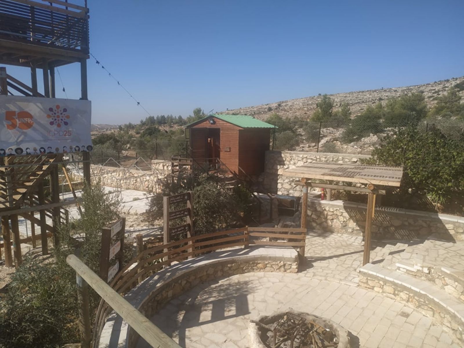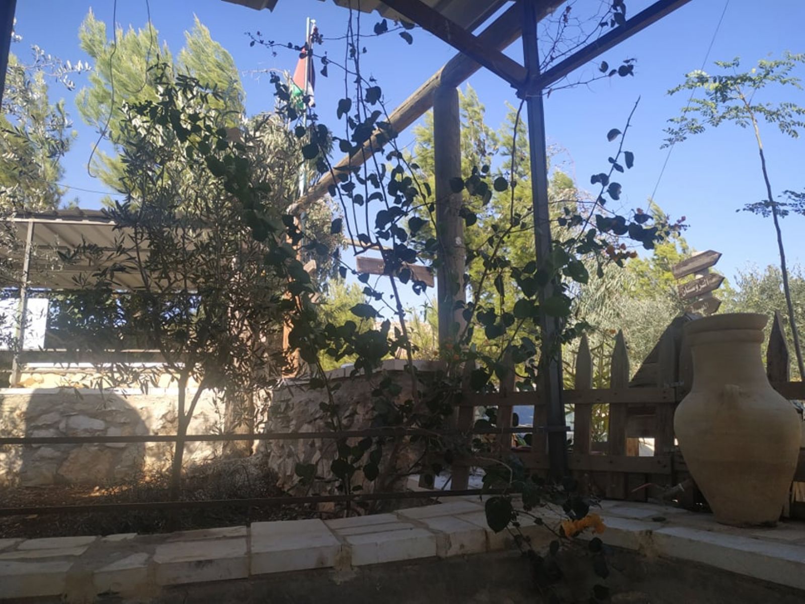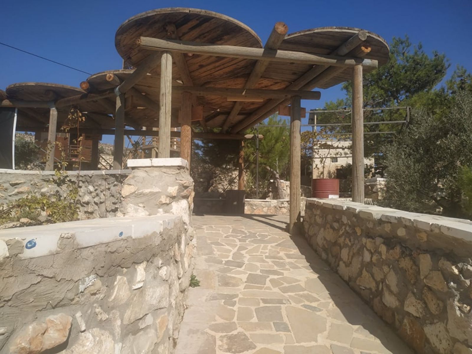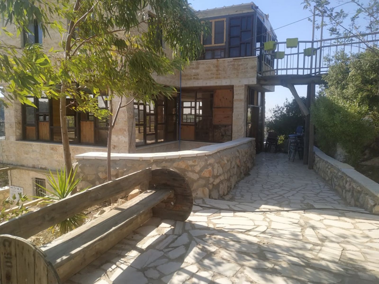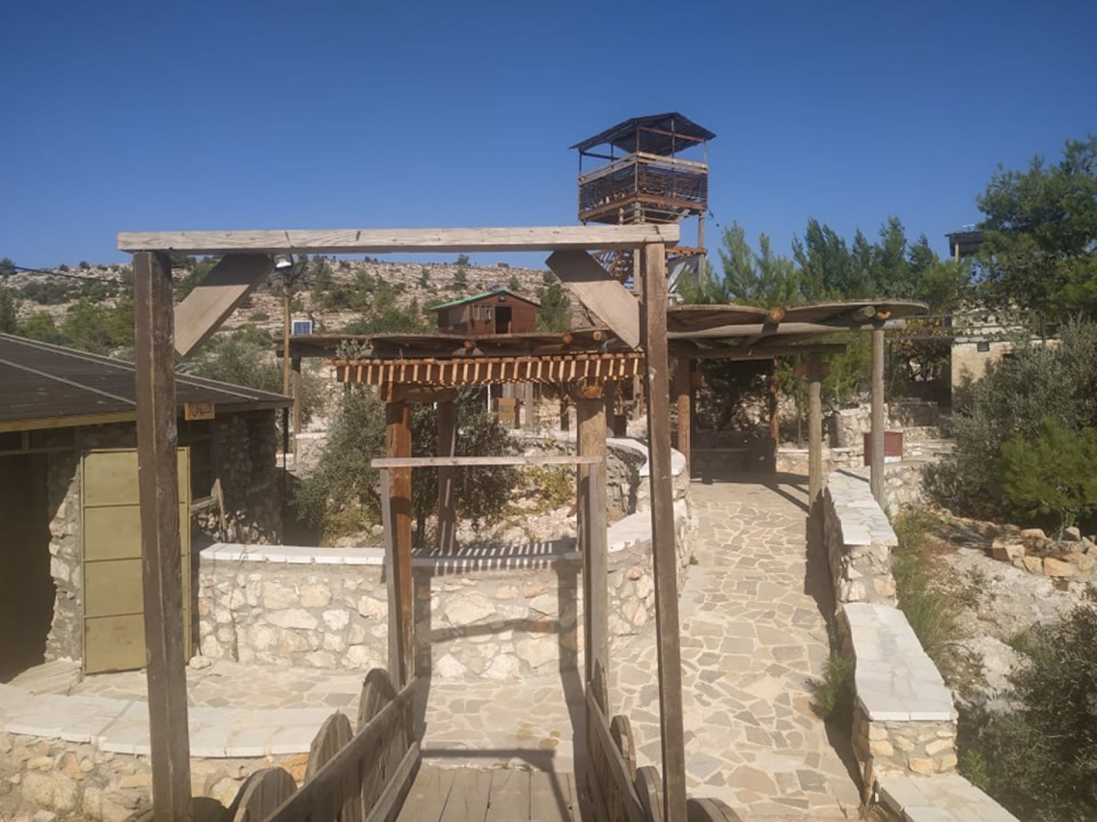 ونوه إلى أنه تم تهيئة المساحة على مراحل، شملت المرحلة الأولى، شق طريق ترابي للوصول إلى الأرض، ومن ثم حفر بئر جمع للمياه، وبناء أولى المرافق الضرورية لاستكمال المشروع الذي أهم ما يميزه أن غالبية الأبنية المقامة أو المخططة، تقوم على استثمار الموارد المتاحة (حجارة، صخور، طين، إعادة تدوير لبعض المواد...) بطريقة تحافظ على البيئة، وتنتمي للمشهد الطبيعي للمنطقة، دون تشويه لها، بالإضافة إلى تشجير المناطق الفارغة في الأرض.