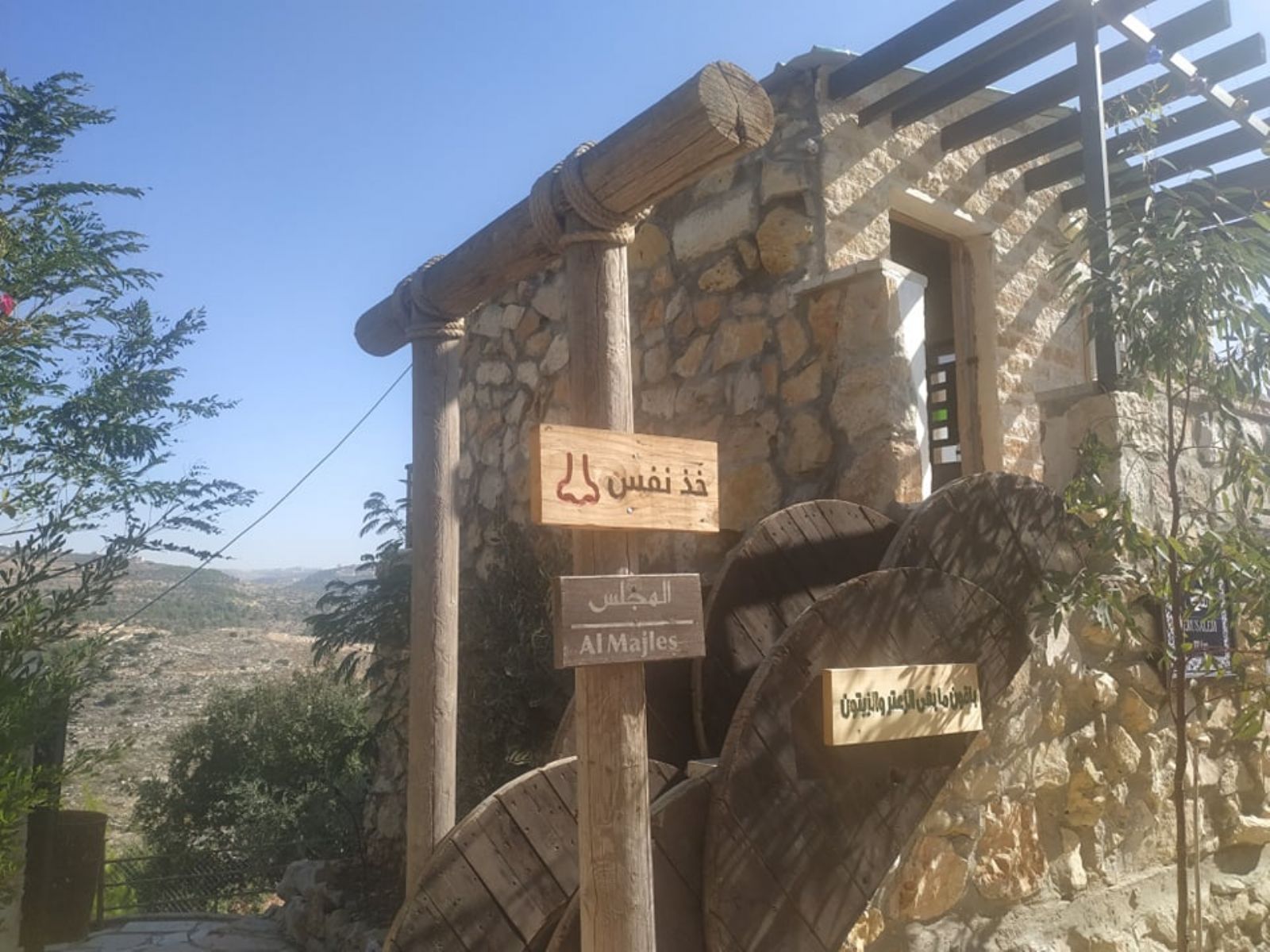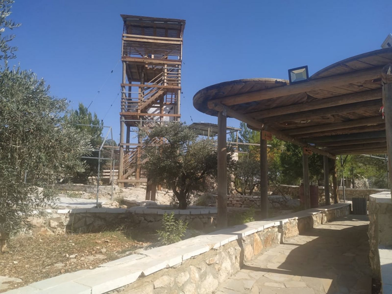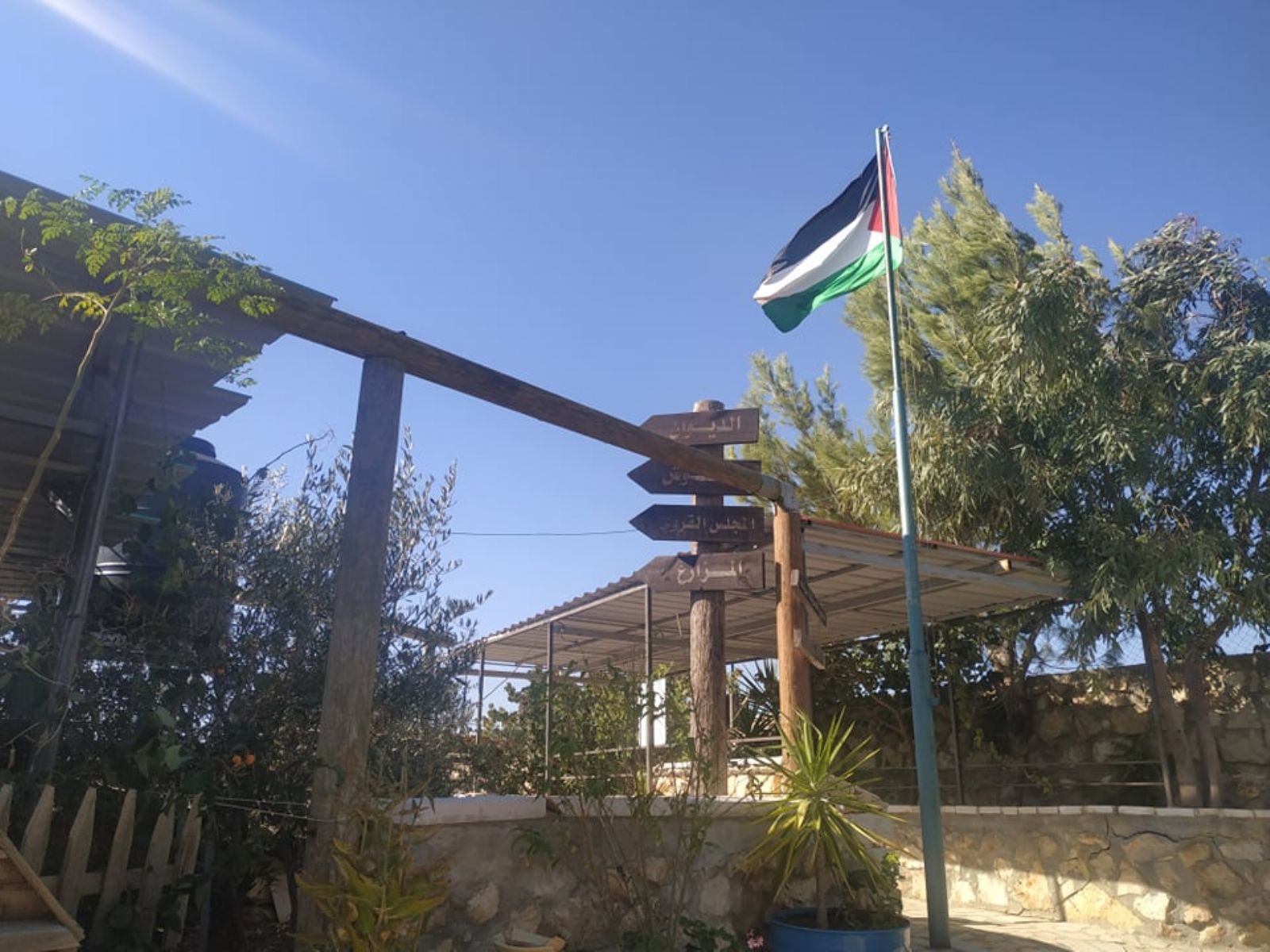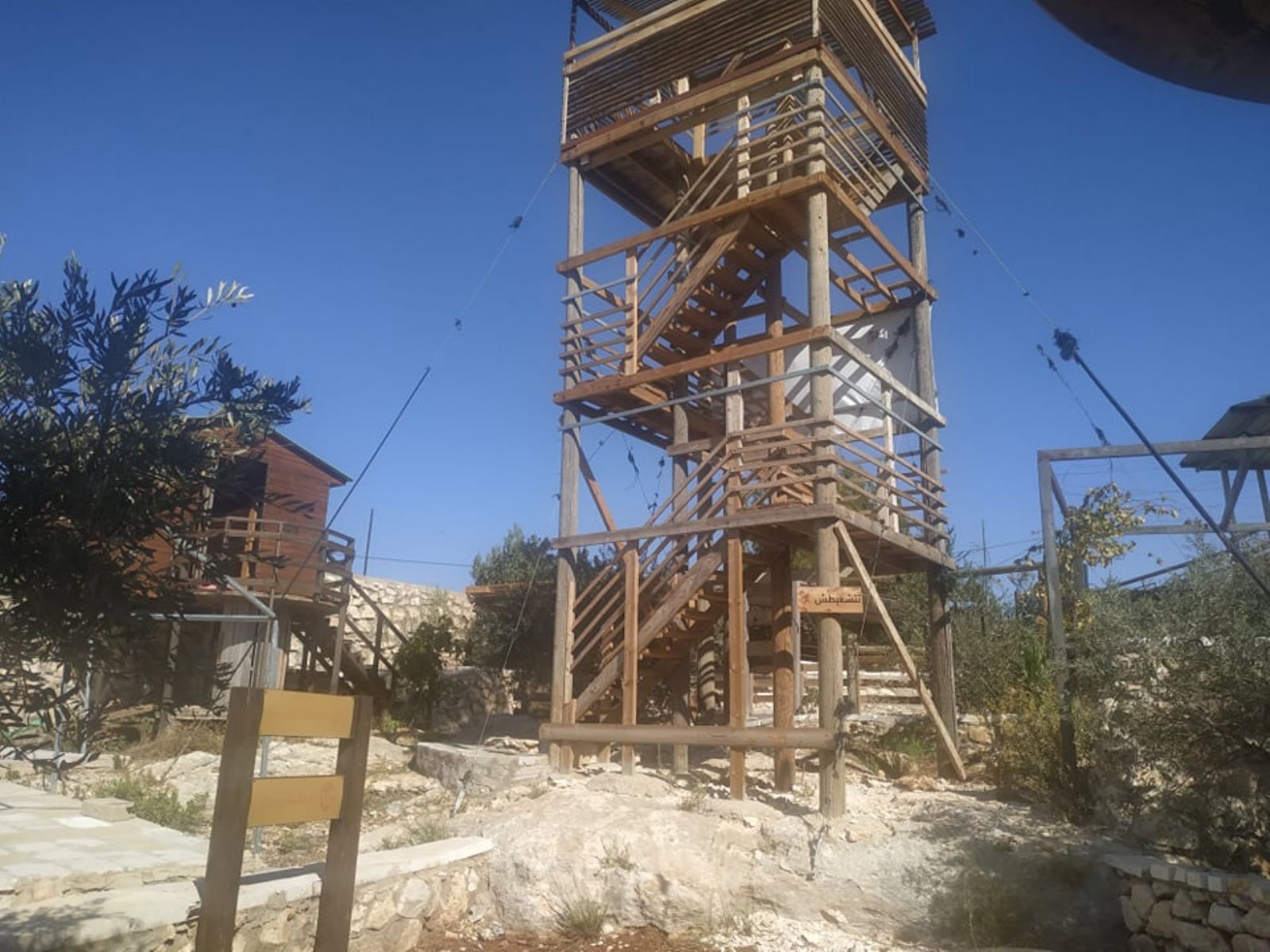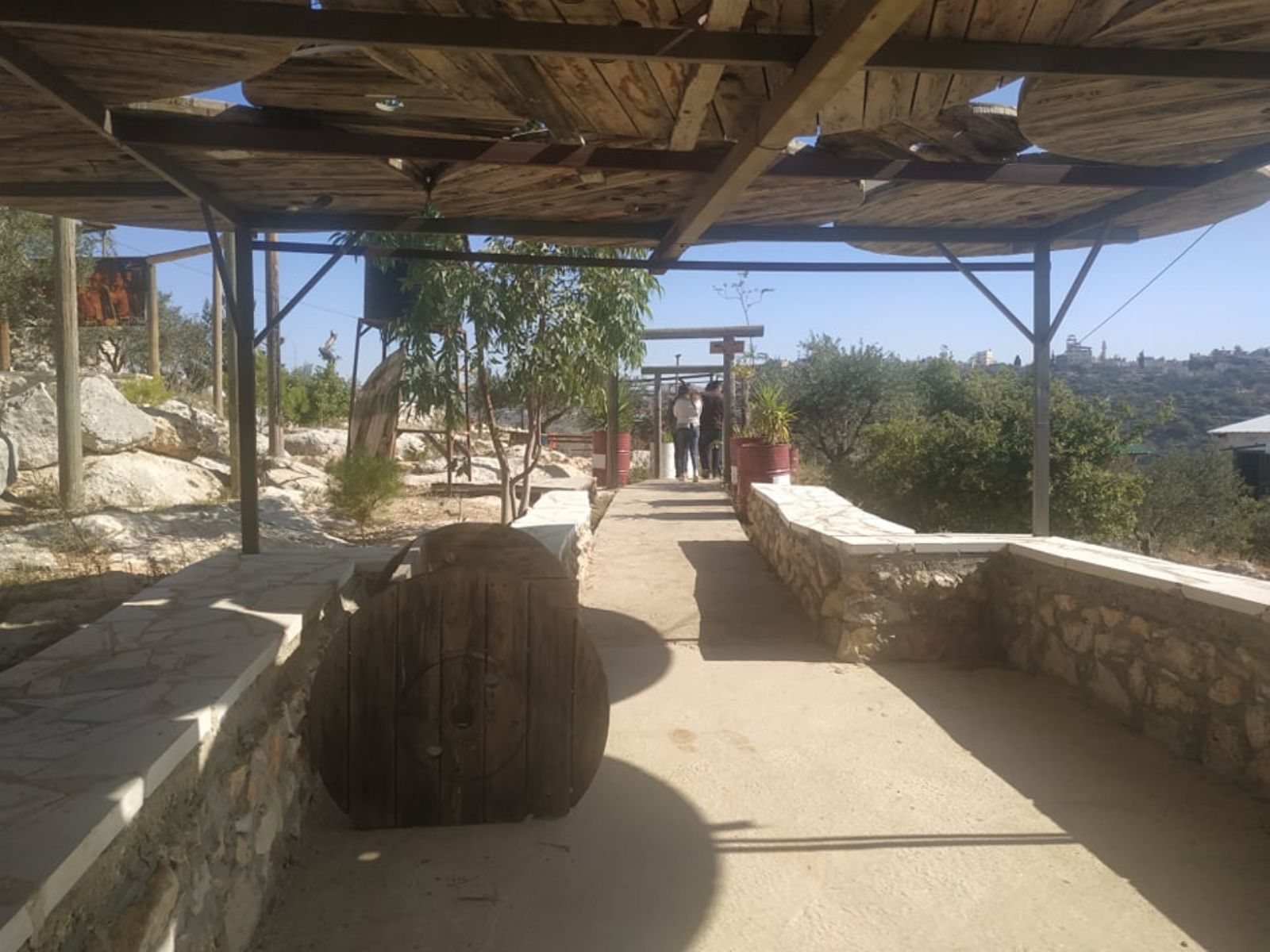 ونوه إلى أنه تم تهيئة المساحة على مراحل، شملت المرحلة الأولى، شق طريق ترابي للوصول إلى الأرض، ومن ثم حفر بئر جمع للمياه، وبناء أولى المرافق الضرورية لاستكمال المشروع الذي أهم ما يميزه أن غالبية الأبنية المقامة أو المخططة، تقوم على استثمار الموارد المتاحة (حجارة، صخور، طين، إعادة تدوير لبعض المواد...) بطريقة تحافظ على البيئة، وتنتمي للمشهد الطبيعي للمنطقة، دون تشويه لها، بالإضافة إلى تشجير المناطق الفارغة في الأرض.