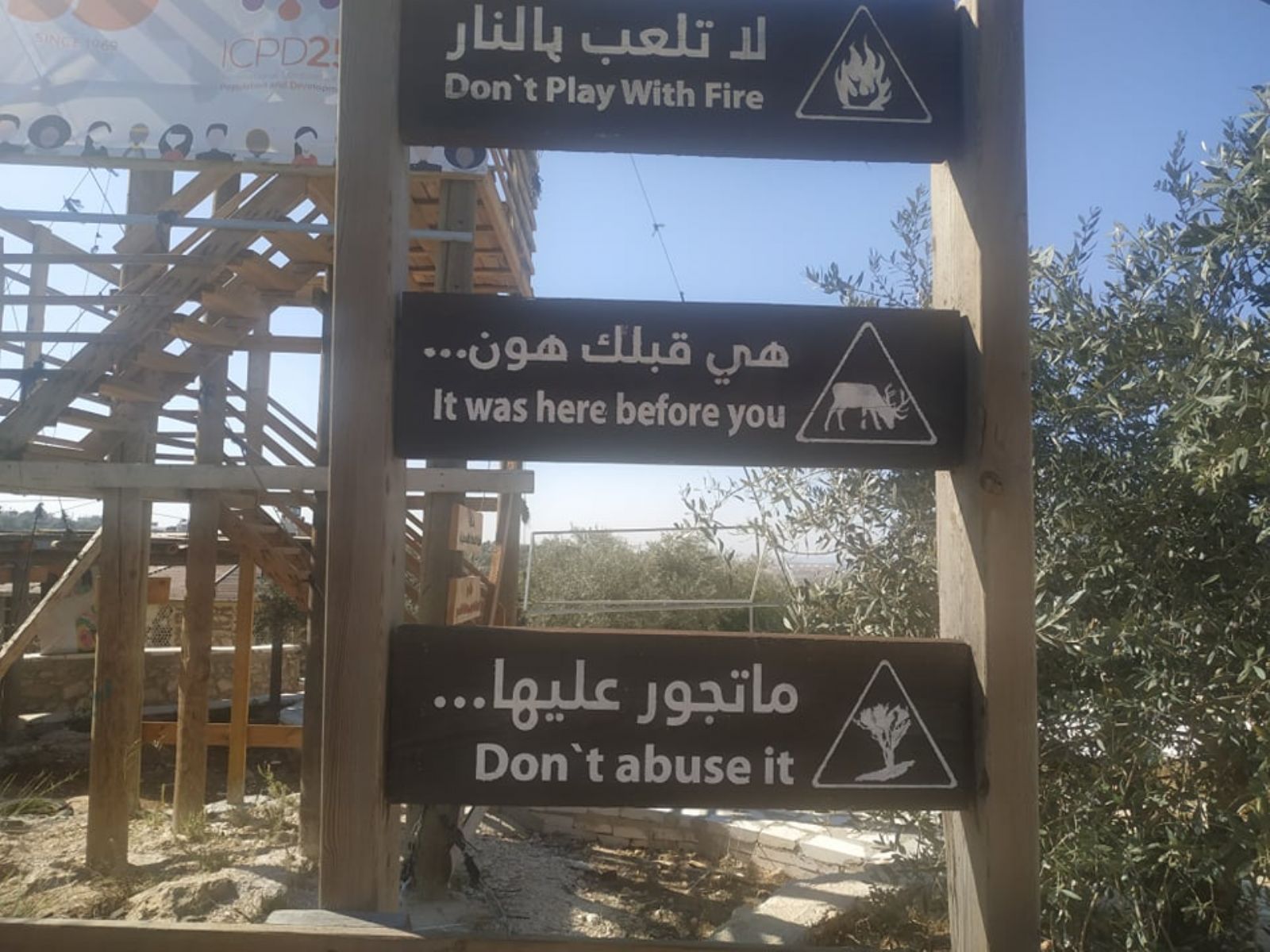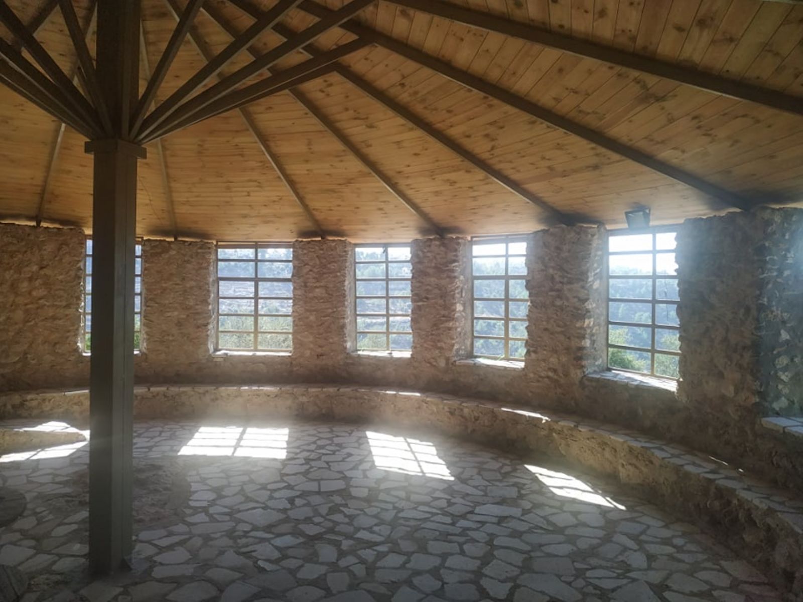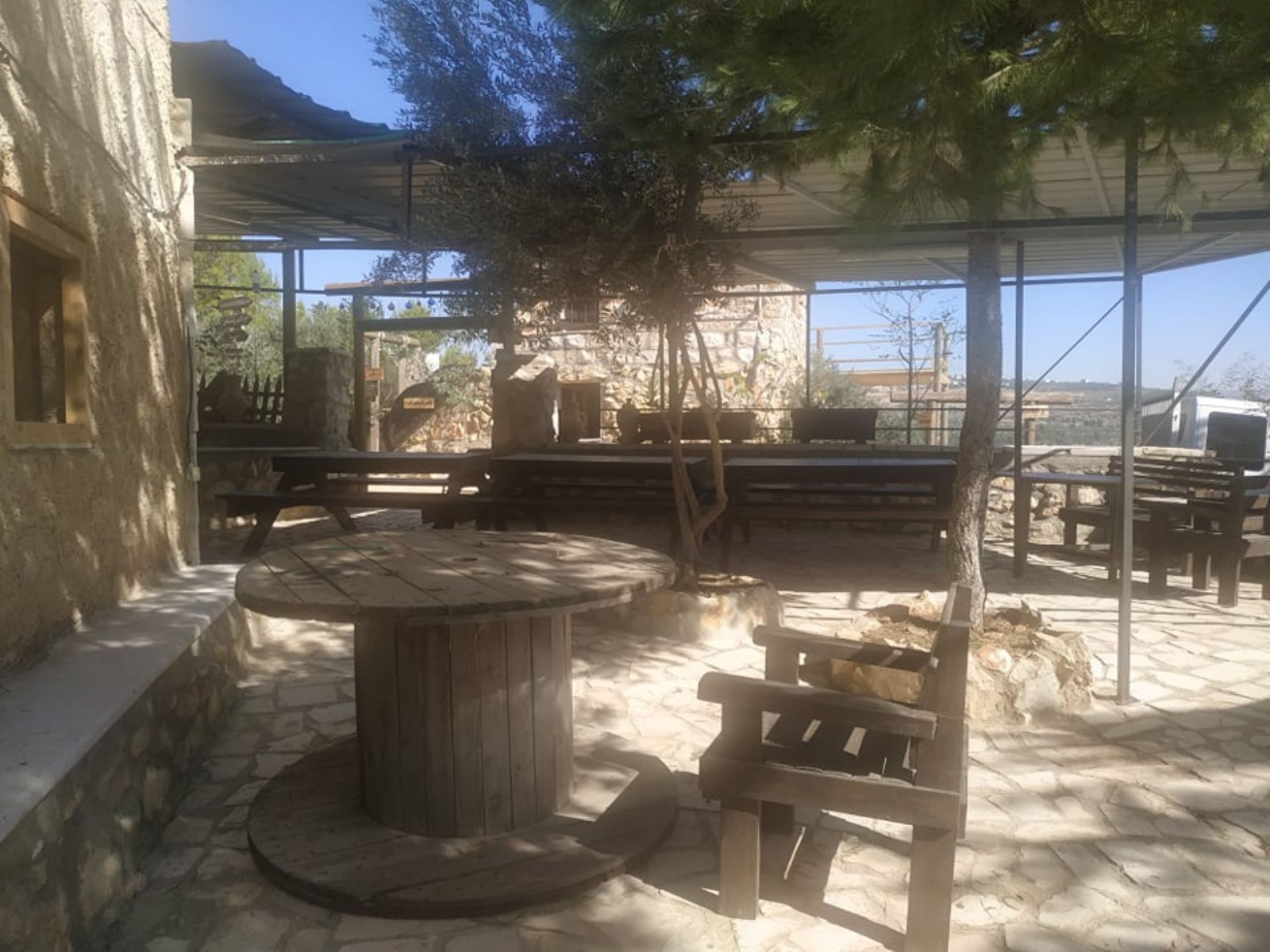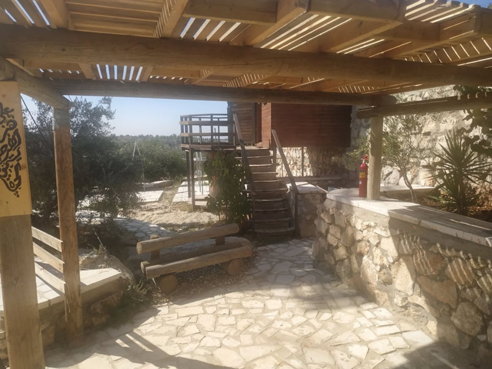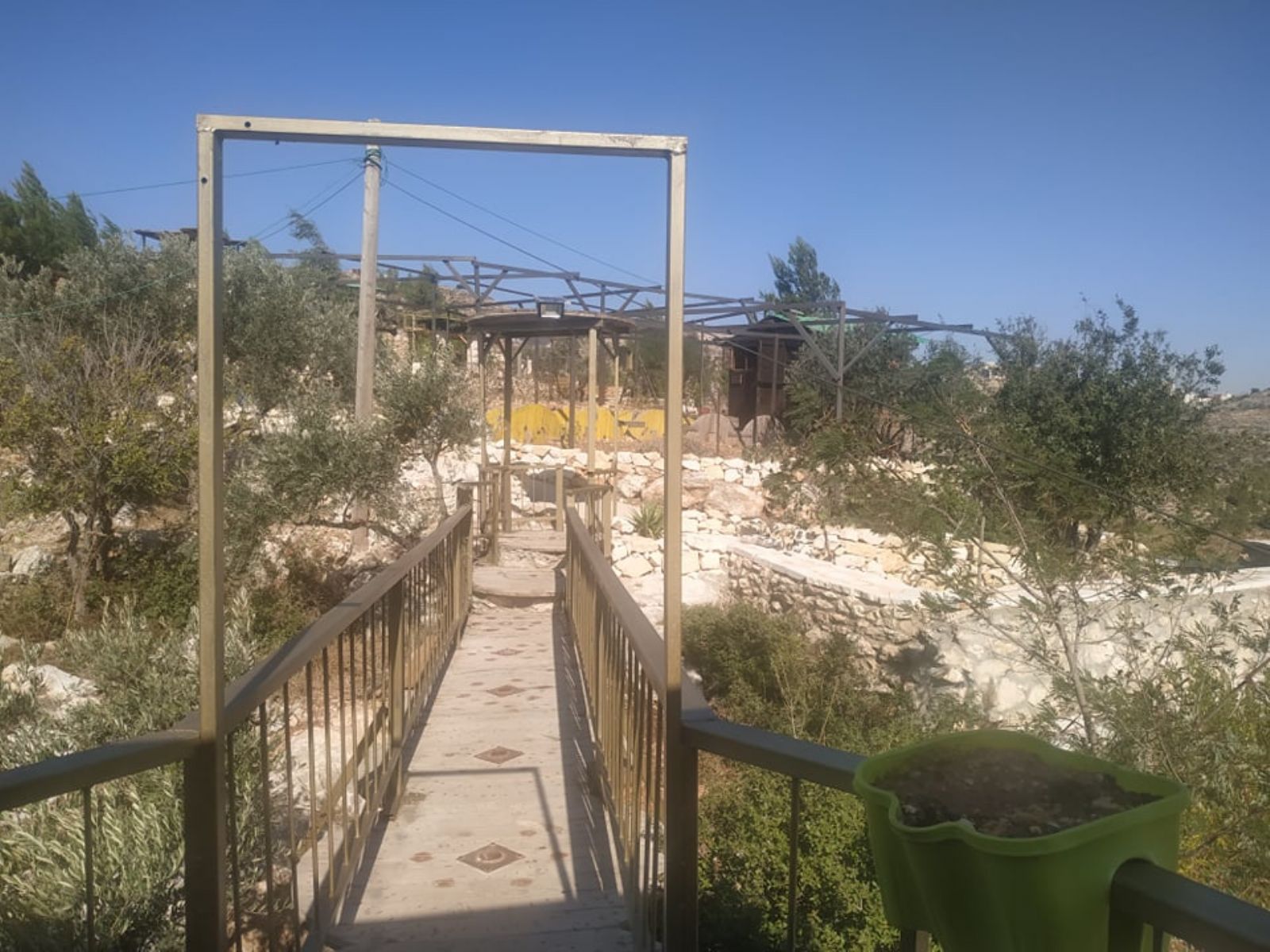 ونوه إلى أنه تم تهيئة المساحة على مراحل، شملت المرحلة الأولى، شق طريق ترابي للوصول إلى الأرض، ومن ثم حفر بئر جمع للمياه، وبناء أولى المرافق الضرورية لاستكمال المشروع الذي أهم ما يميزه أن غالبية الأبنية المقامة أو المخططة، تقوم على استثمار الموارد المتاحة (حجارة، صخور، طين، إعادة تدوير لبعض المواد...) بطريقة تحافظ على البيئة، وتنتمي للمشهد الطبيعي للمنطقة، دون تشويه لها، بالإضافة إلى تشجير المناطق الفارغة في الأرض.