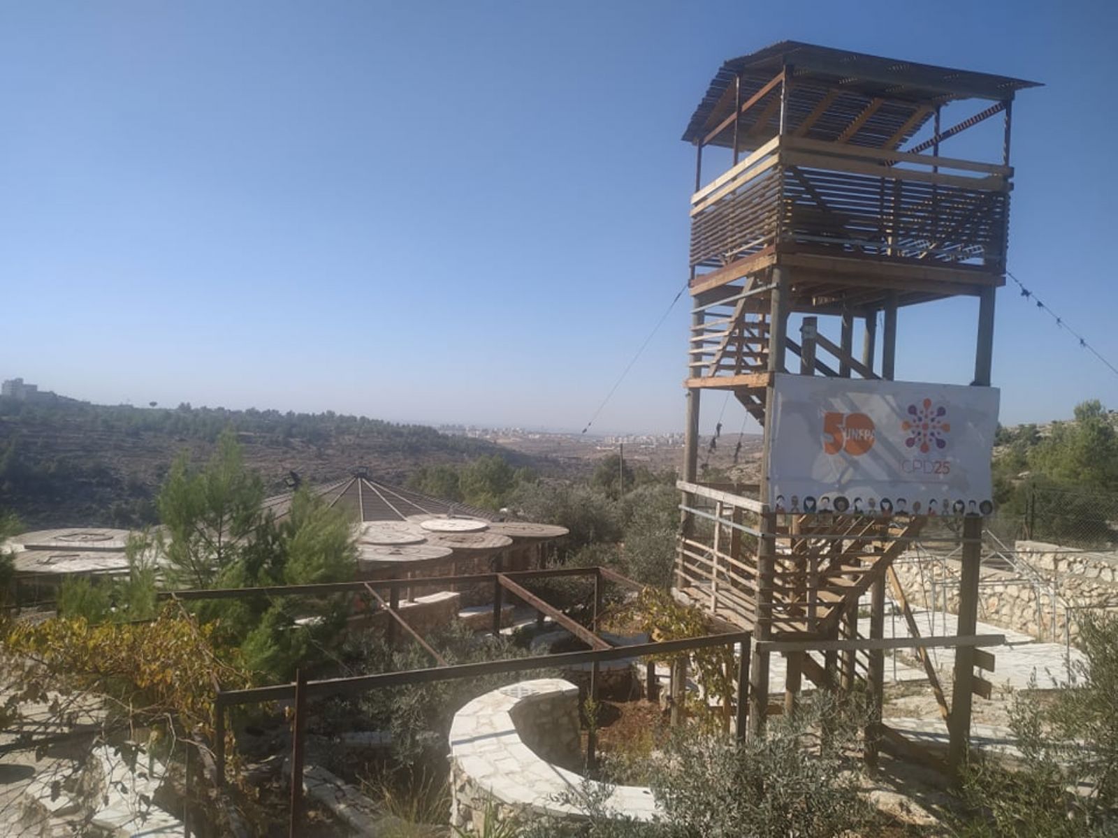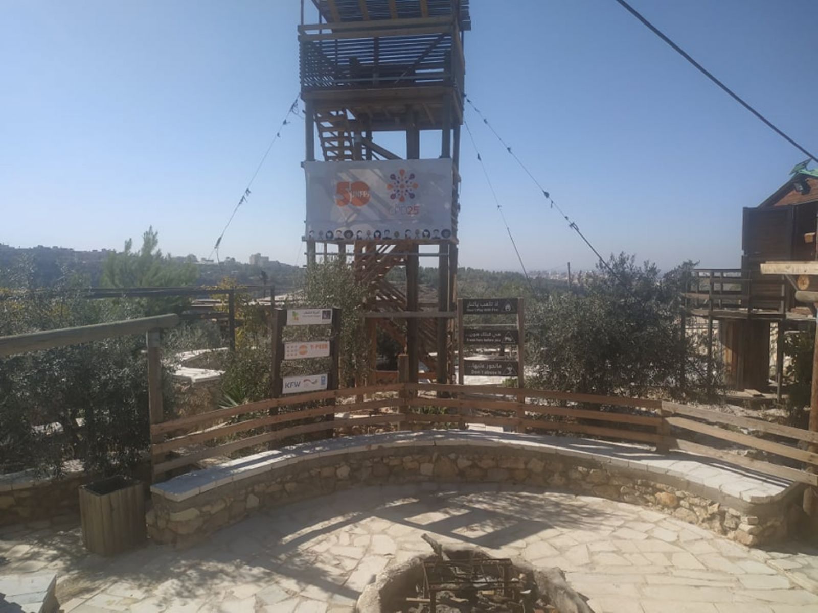 ثم توجه الجانبان إلى أحد مشاريع منتدى شارك الشابي، وهي قرية الشباب التي أقيمت على جبل يقابل بلدة كفر نعمة غربي رام الله، وتم معاينتها والتعرف على أقسامها المختلفة.