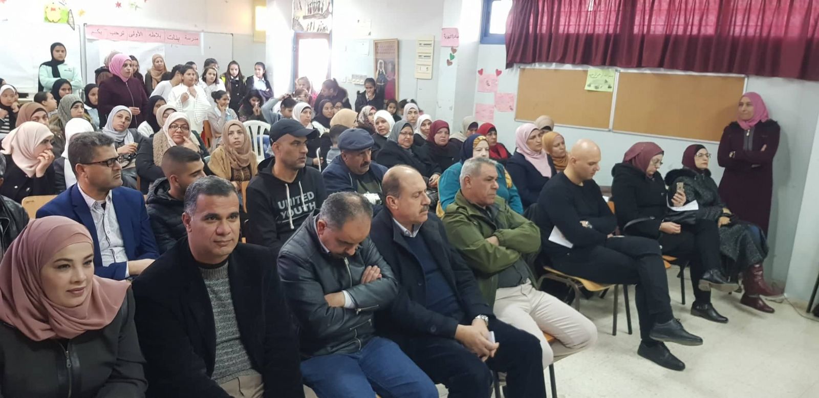 وقد حضر الاحتفال كوكبة من الشخصيات الداعمة للمشروع حيث كان بداية الاحتفال كلمة ترحيبية من مديرة المدرسة وتلتها كلمة مدير التعليم الدكتور حسن رمضان بعد ذلك قامت المرشدة التربوية سمر جبر بالتحدث عن المشروع وبعد ذلك كلمة جمعية مدرسة الامهات ولكي نضفي على الاحتفال البهجة والسرور كان لا بد من فقرات فنية ترفيهية من غناء راب و رقصات ودبكات.