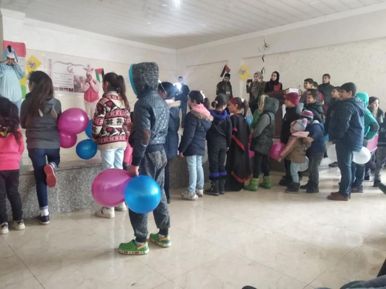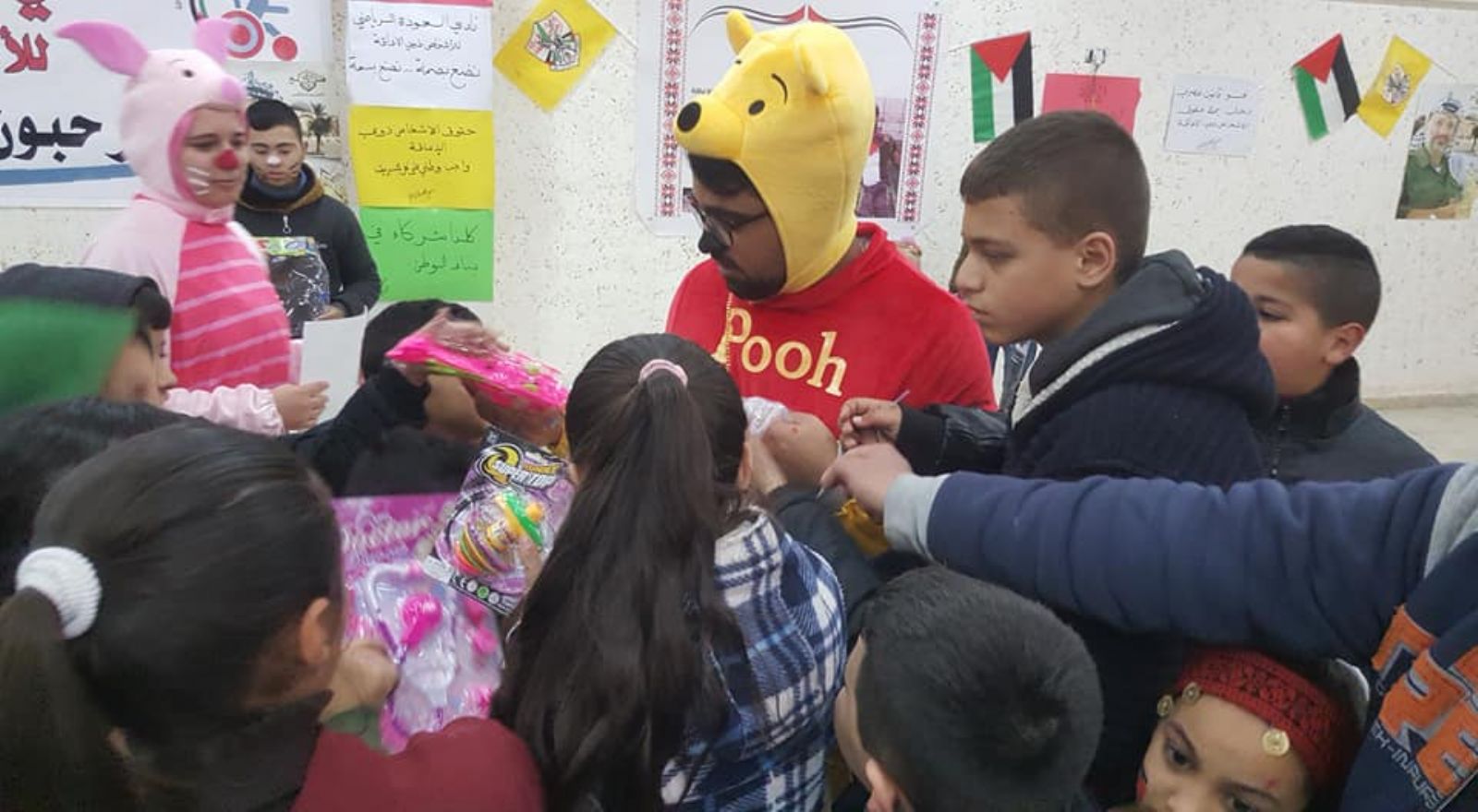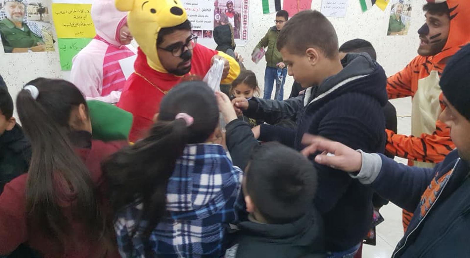 وشارك الفنان الفلسطيني محمود نصار وفرقته رسومات على وجوه الاطفال.