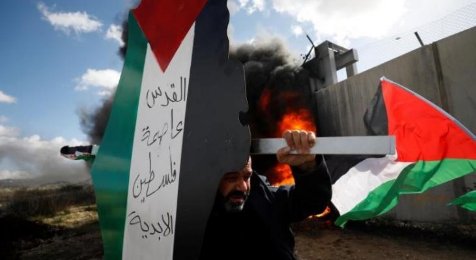 وخرج العشرات من الفلسطينيين في مسيرة في بلعين باتجاه الجدار العازل تنديدا بالخطة الأميركية للسلام.