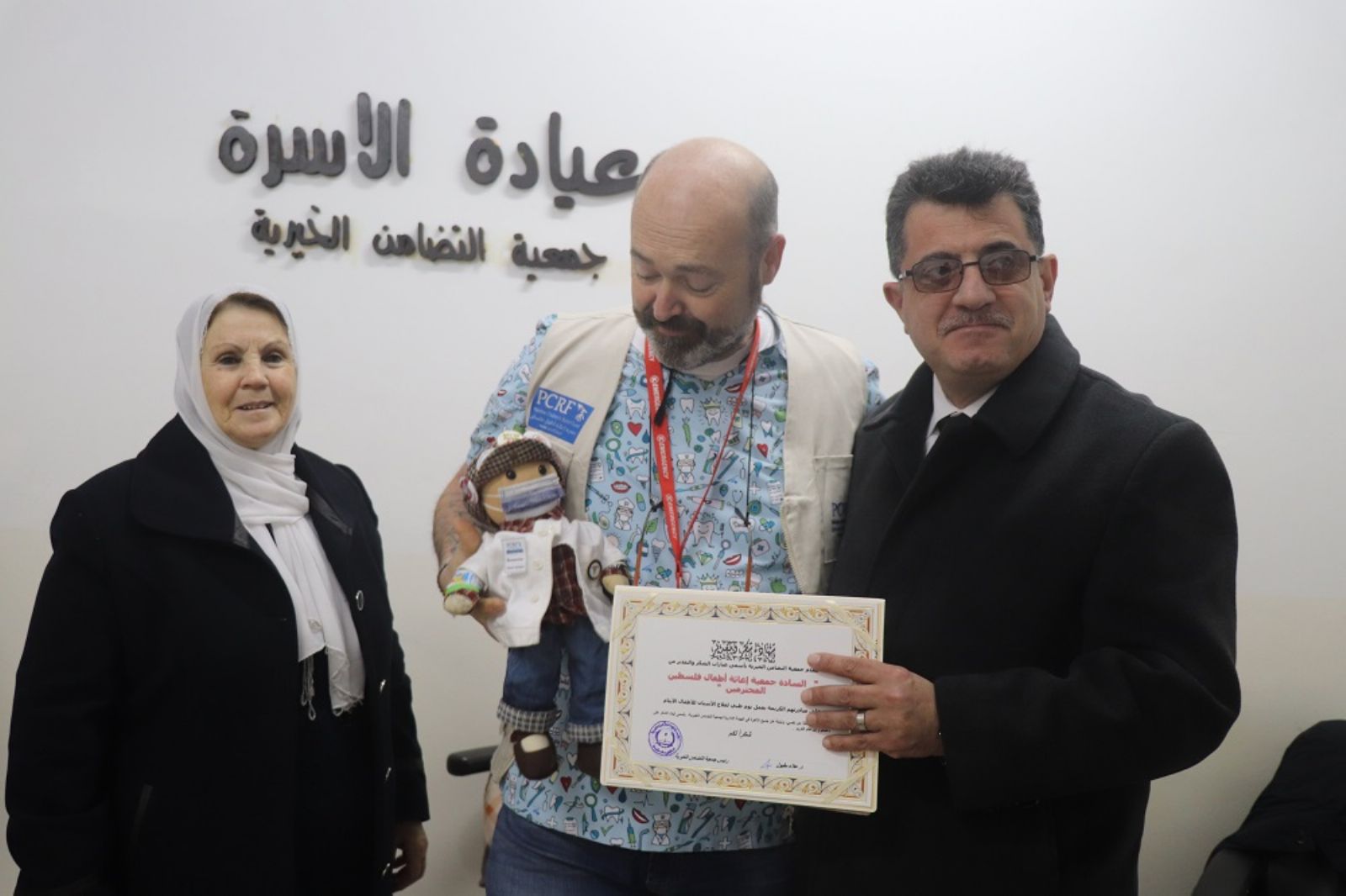 وقام الدكتور علاء مقبول رئيس الجمعيه والسيده ختام الجوهري عضو الجمعية بتكريم الوفد الايطالي بقيادة الدكتور باولو اركانجلي والدكتورة مريم عبد الله . ومنً ثم تكريم جمعية اغاثة اطفال فلسطين على عملها الدوؤب في مساعدة اطفال فلسطين.