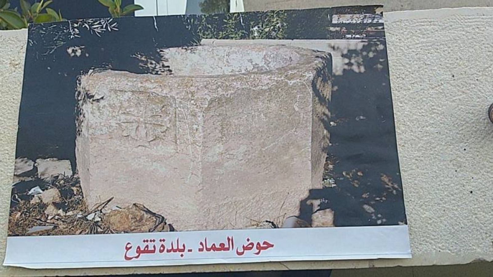 استولت قوات الاحتلال فجر اليوم الإثنين على قطعة أثرية كبيرة الحجم في بلدة تقوع شرق مدينة بيت لحم.