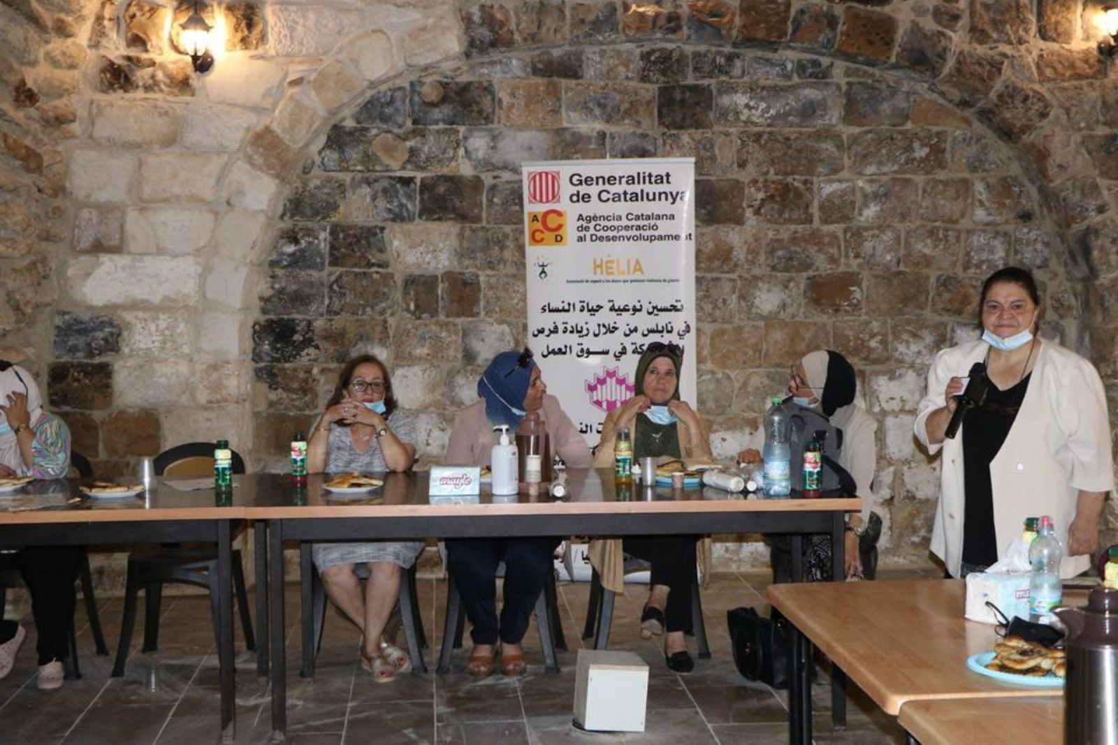 ربما تحتوي الصورة على: نص مفاده 'Generalitat Catalunya de Catalana Agència Cooperació de Desenvolupament al HELIA gènere violencia pateixen dones تحسين نوعية حياة النساء في نابلس من خلال زيادة فرص المشاركة في سوق العمل مركز الدراسات النسوية حرية امة 一 مساو اة of flife quality the Improve employment expanding by Nablus in opportunities participation and ينفذ المشروع: مركز الدراسات النسوية نابلس التعاون مع مؤسسة هيليا برشلونة'