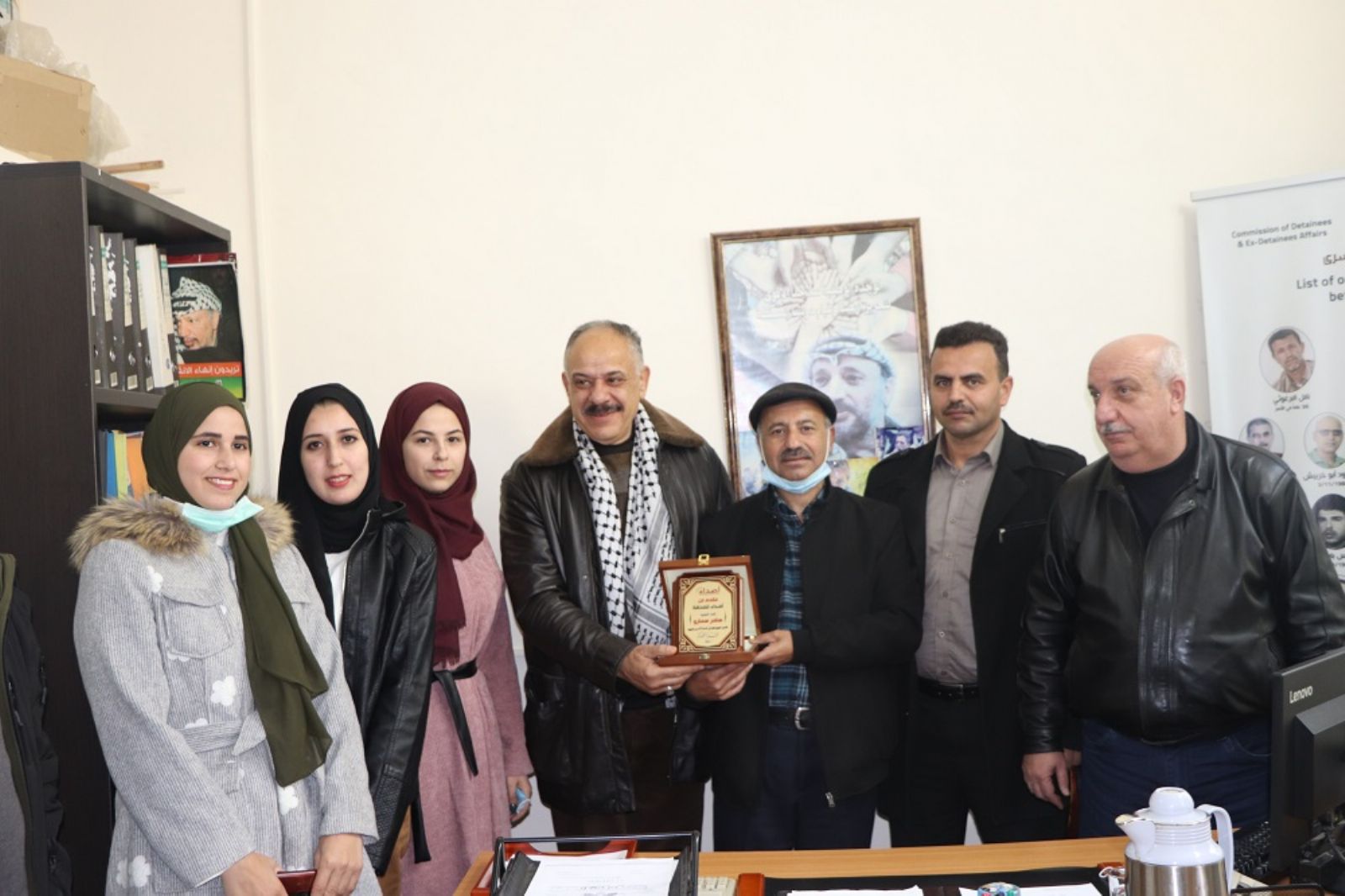 وتمت عملية التكريم بحضور مدير مكتب الهيئة الجديد منيب شبيب والعقيد تيسير عزام مدير التوجيه السياسي والمعنوي في محافظة نابلس ومظفر ذوقان منسق اللجنة الوطنية العليا لمساندة الاسرى، الى جانب مجموعة من فريق أصداء وعلى رأسهم الدكتور امين أبو وردة المشرف العام على موقع ومنصات أصداء الإخبارية.
