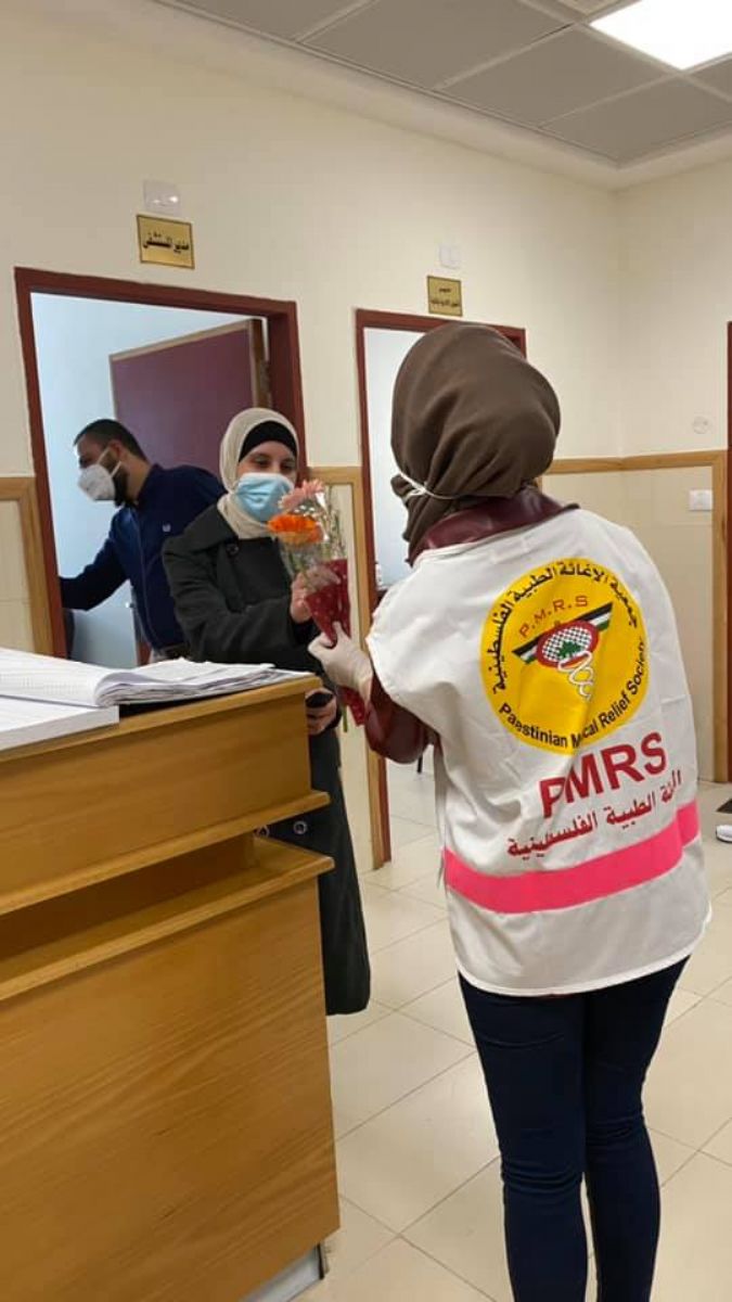 علاج كورونا في الهلال الأحمر بنابلس بمناسبة عيد الام.