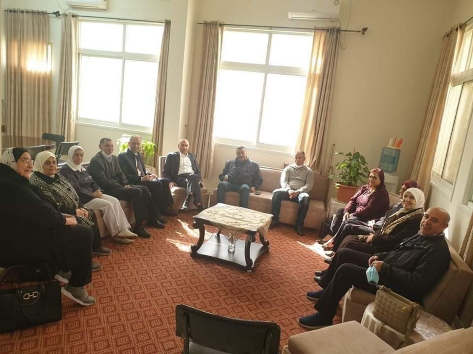 نابلس:- بمناسبة مرور مئة عام على تاسيس جمعية الإتحاد النسائي العربي بنابلس واحتفالا بهذه الذكرى زار مدير عام المستشفى الإنجيلي العربي د.وليد سابا القرة والوفد المرافق له مقر الجمعية بنابلس وكان في استقباله رئيسة الهيئة الإدارية السيدة عهود يعيش قناديلو وعضوات الهيئة الإدارية ومدير مستشفى الإتحاد النسائي د. ماجد ابو جيش.