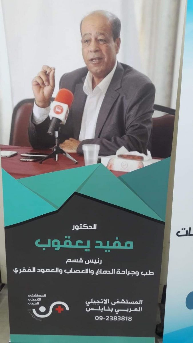 نابلس : بالتعاون مع اللجنة الشعبية لخدمات مخيم قلنديا نظمت المستشفى الإنجيلي العربي يوما طبيا مجانيا وذلك بمشاركة د. مفيد يعقوب اخصائي جراحة الدماغ والأعصاب ود. تيسير زيتاوي اختصاصي جراحة العظام والمفاصل والروماتيزم وبمشاركة قسمي المختبر والتمريض .