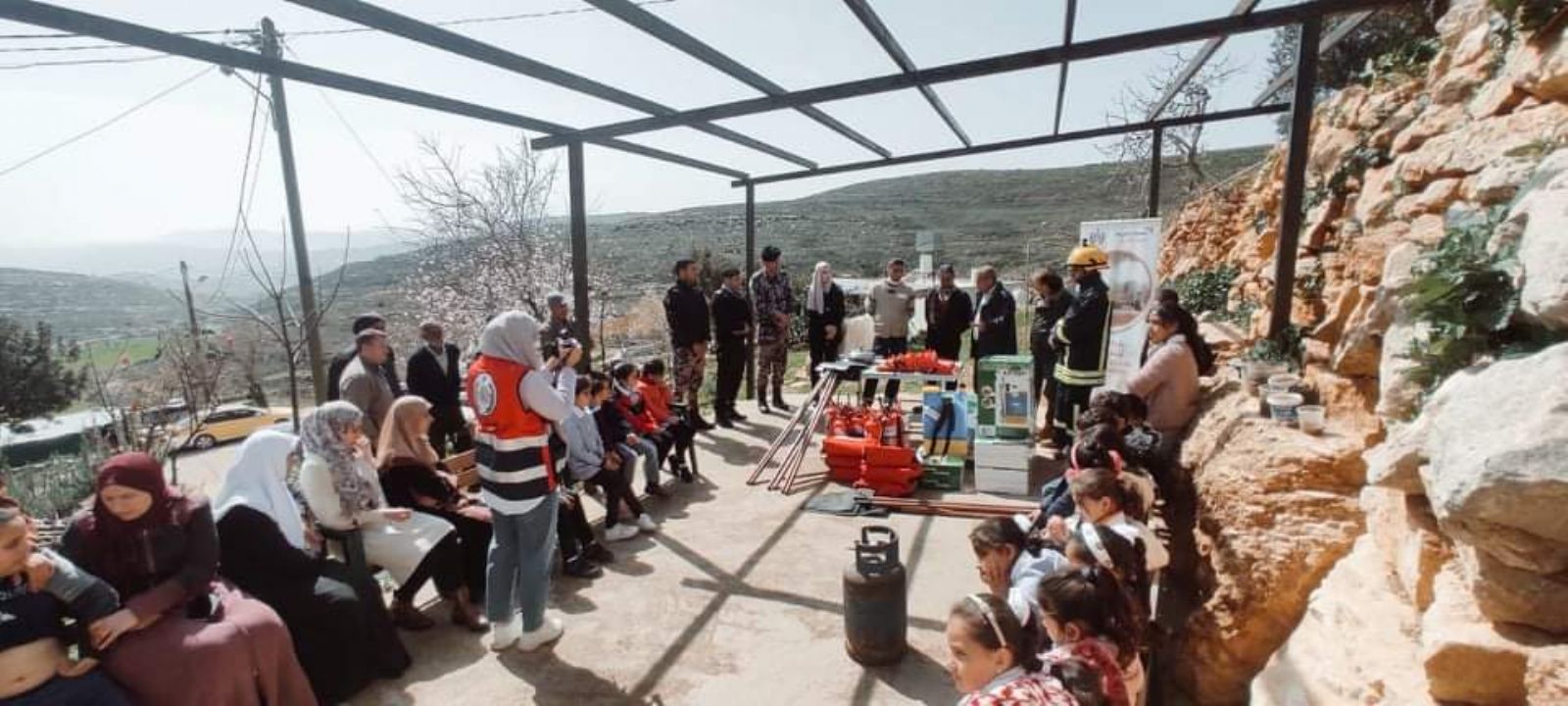احيا الدفاع المدني في نابلس بالتعاون مع الرؤية العالمية اليوم اليوم العالمي للحماية المدنية بتسليم معدات سلامة عامة ونشاط تدريبي لاهالي يانون احد التجمعات السكانية النائية جنوب نابلس