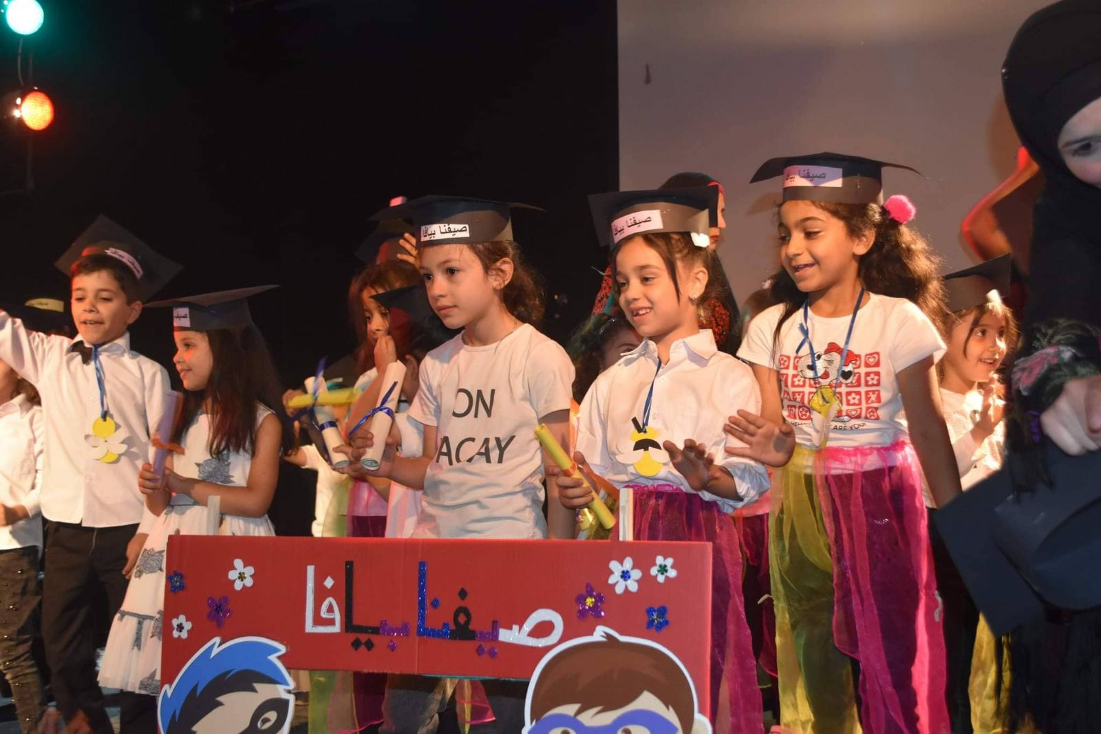 وتخلل الحفل فقرات متنوعة من إنتاج اطفال النادي كمسرحية اركان الاسلام، وقصيدة" انا الأسير" ورقصة بعنوان المس قلبي لفرقة النحلات بعنوان "ماما علمتني" ودبكة فلسطينية، واداء جماعي بعنوان لنكن دوما اصدقاء. واختتم الحفل بتوزيع الشهادات على المشرفات والمشاركات بالنادي، وشهادات تقدير لأطفال صيفنا بيافا وتم التقاط الصور التذكارية الجماعية مع كادر الروضة والحضانه.