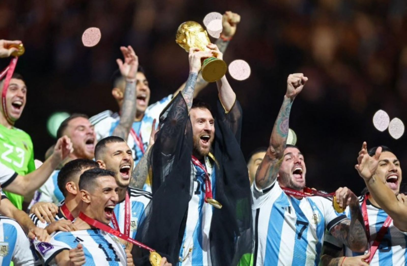 توج منتخب الأرجنتين مساء اليوم الأحد، بلقب كأس العالم بفوزه باللقاء الختامي على منتخب فرنسا بعد اللجوء لركلات الجزاء بعد التعادل في الوقتين الاصلي والاضافي بثلاثة أهداف لمثلها، في المباراة التي احتضنها استاد لوسيل في العاصمة القطرية الدوحة.