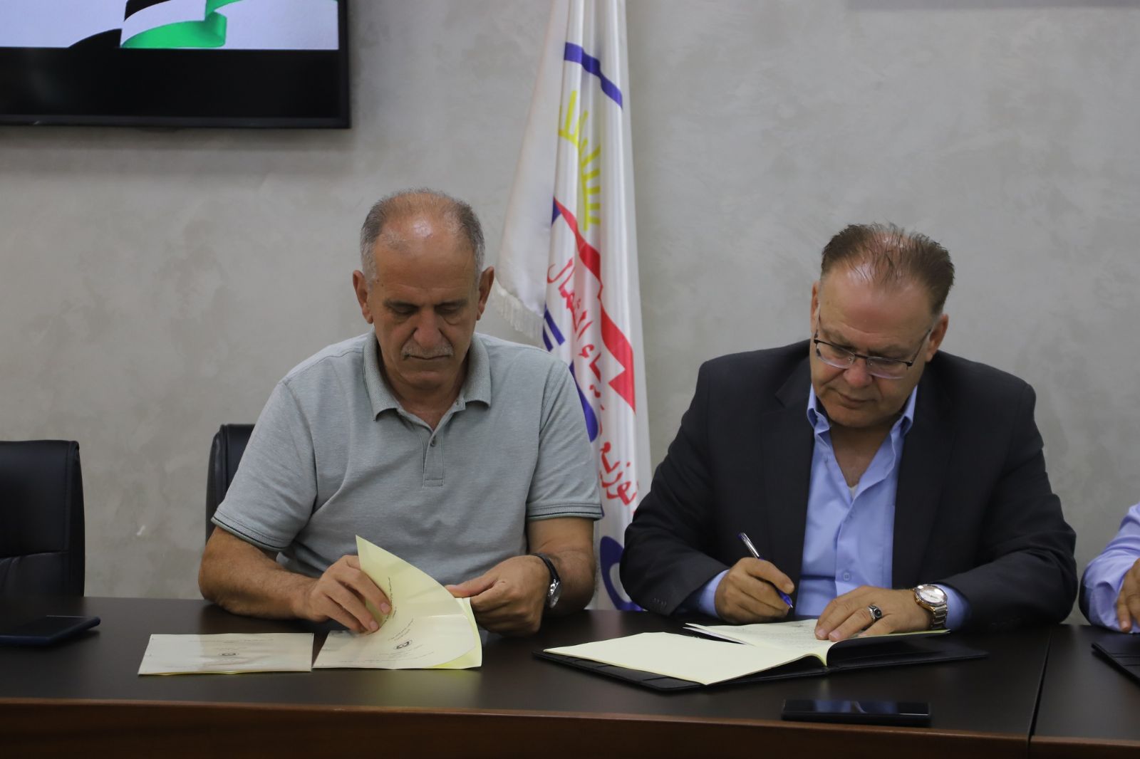 وقع المهندس إياد خلف رئيس مجلس إدارة "كهرباء الشمال "والمهندس أسعد سوالمة المدير العام والدكتور عماد بريك رئيس مجلس إدارة الشركة الفلسطينية لنقل الكهرباء والمهندس نشأت أبو بكر المدير العام وبحضور مدراء الإدارات في كهرباء الشمال اليوم الاربعاء في مقر الادارة العامة "لكهرباء الشمال" إتفاقية تعاون تقضي بموجبها بإستخدام شبكة توزيع كهرباء الشمال لتمرير 10 ميجا عبر خطوطها من محطة صرة بهدف تزويد مدينة طولكرم .