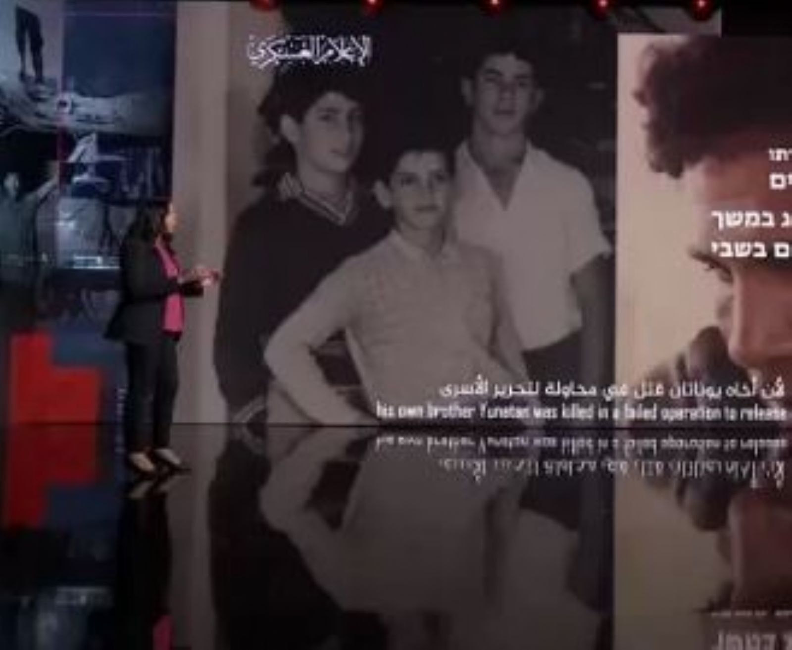 وتابعت كتائب القسام موضحة بعبارة لاحقة كتب فيها "لأن أخاه يوناتان قتل في محاولة لتحرير الأسرى يقول لكم بشكل واضح: ذوقوا ما ذقت بموت أخي"، وجاءت العبارة مصحوبة بصورة يوناتان شقيق بنيامين قبل مقتله، وصورة تجمعهما وهما طفلان.