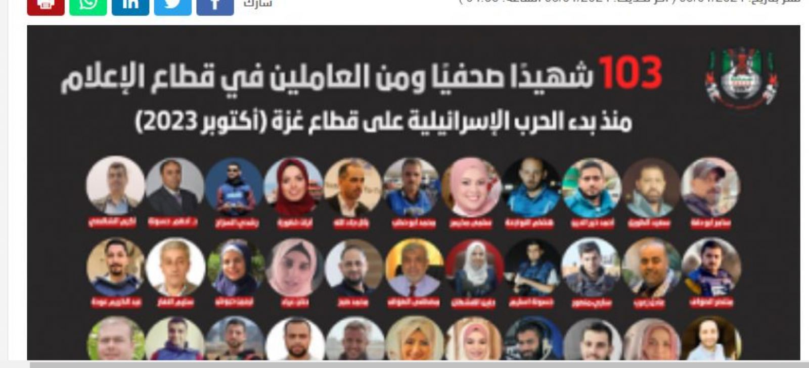 قالت نقابة الصحفيين إن استشهاد الصحفي أكرم الشافعي بعد "رحلة علاج مؤلمة" من إصابة دامية تعرض لها أثناء حصار مستشفى الشفاء، يسلّط الضوء على معاناة الصحفيين الجرحى.