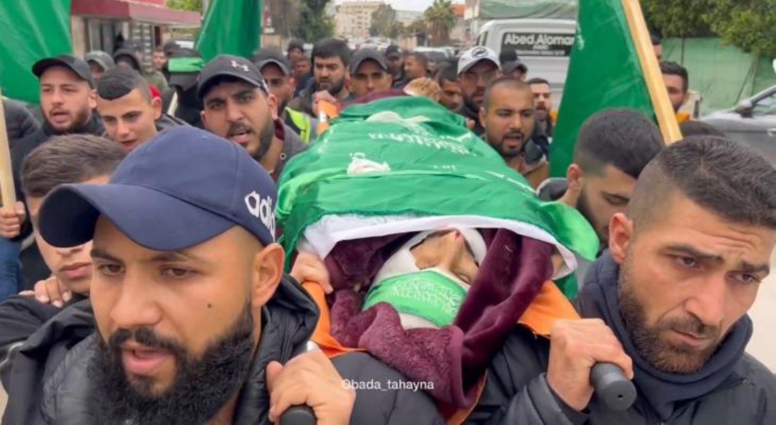 وانطلق موكب التشييع من أمام مستشفى جنين الحكومي، وتوجه إلى مسقط رأس الشهيد في بير الباشا، وحمل المشيعون جثمان الشهيد على الأكتاف، وجابوا به شوارع القرية مرددين هتافات غاضبة ومساندة للمقاومة.