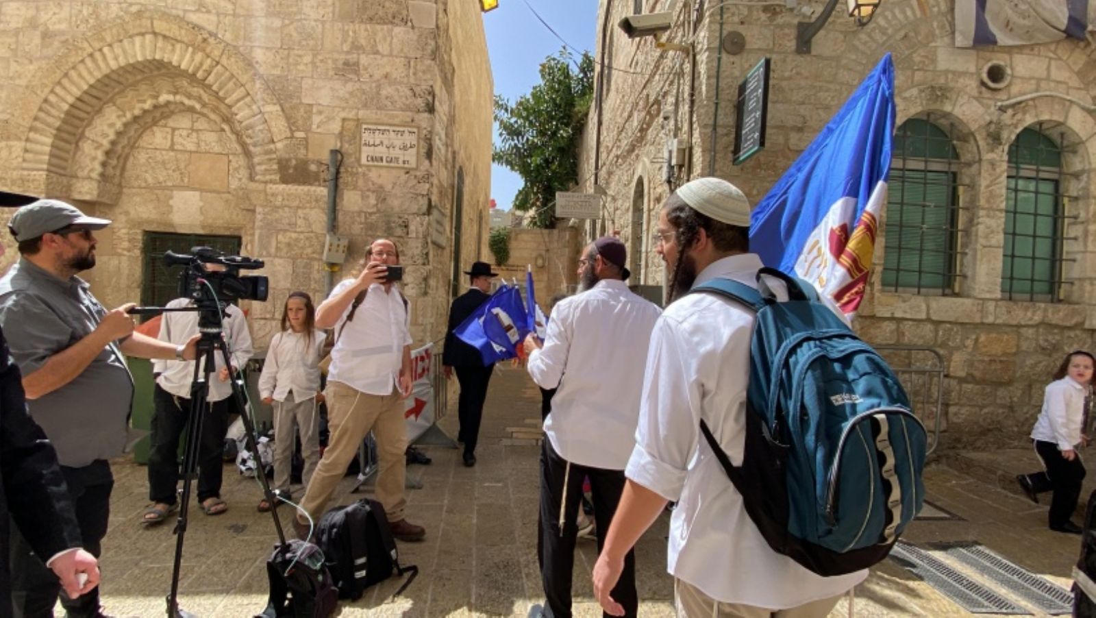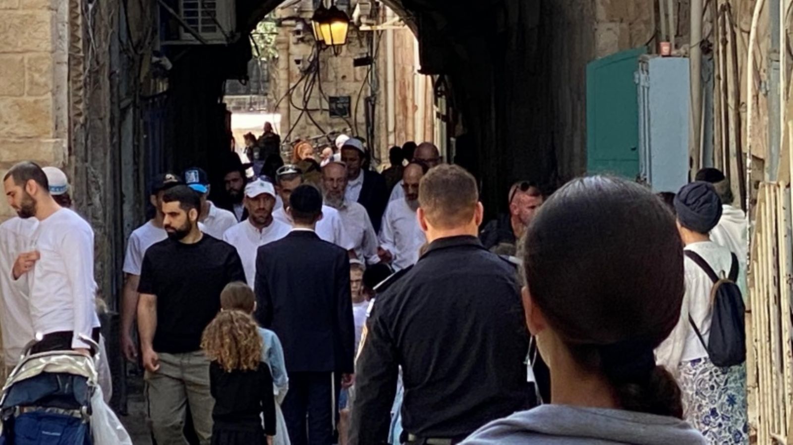 وفي طريق باب السلسلة، سار عشرات المستوطنين باتجاه حائط البراق لاداء الصلاة فيه.