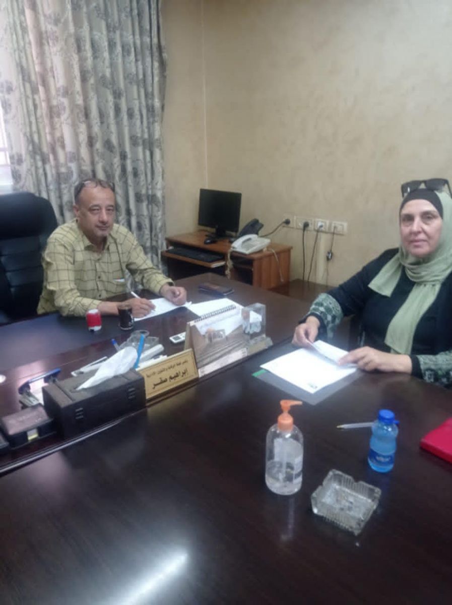 حيث استقبل رئيس اللجنة الشعبية لخدمات مخيم بلاطة الأستاذ عماد زكي Imad Zaki Haj الأستاذة شهيرة بلبيسي Shahira Balbisi لتوقيع الاتفاقية للمرحلة الثانية ما بين اللجنة الشعبية وجمعية كي لا ننسى ضمن مشروع صوت النساء اللاجئات.