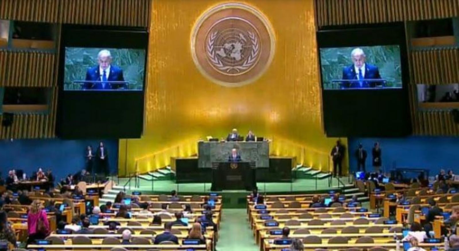 غادرت وفود كثيرة القاعة الرئيسية في الأمم المتحدة لحظة صعود رئيس وزراء حكومة الاحتلال الإسرائيلي، بنيامين نتنياهو، لإلقاء كلمته في الدورة الـ79 للجمعية العامة للأمم المتحدة.