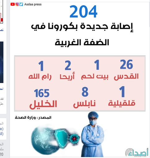 الصحة: وفاتان و204 إصابات جديدة بكورونا في القدس والضفة