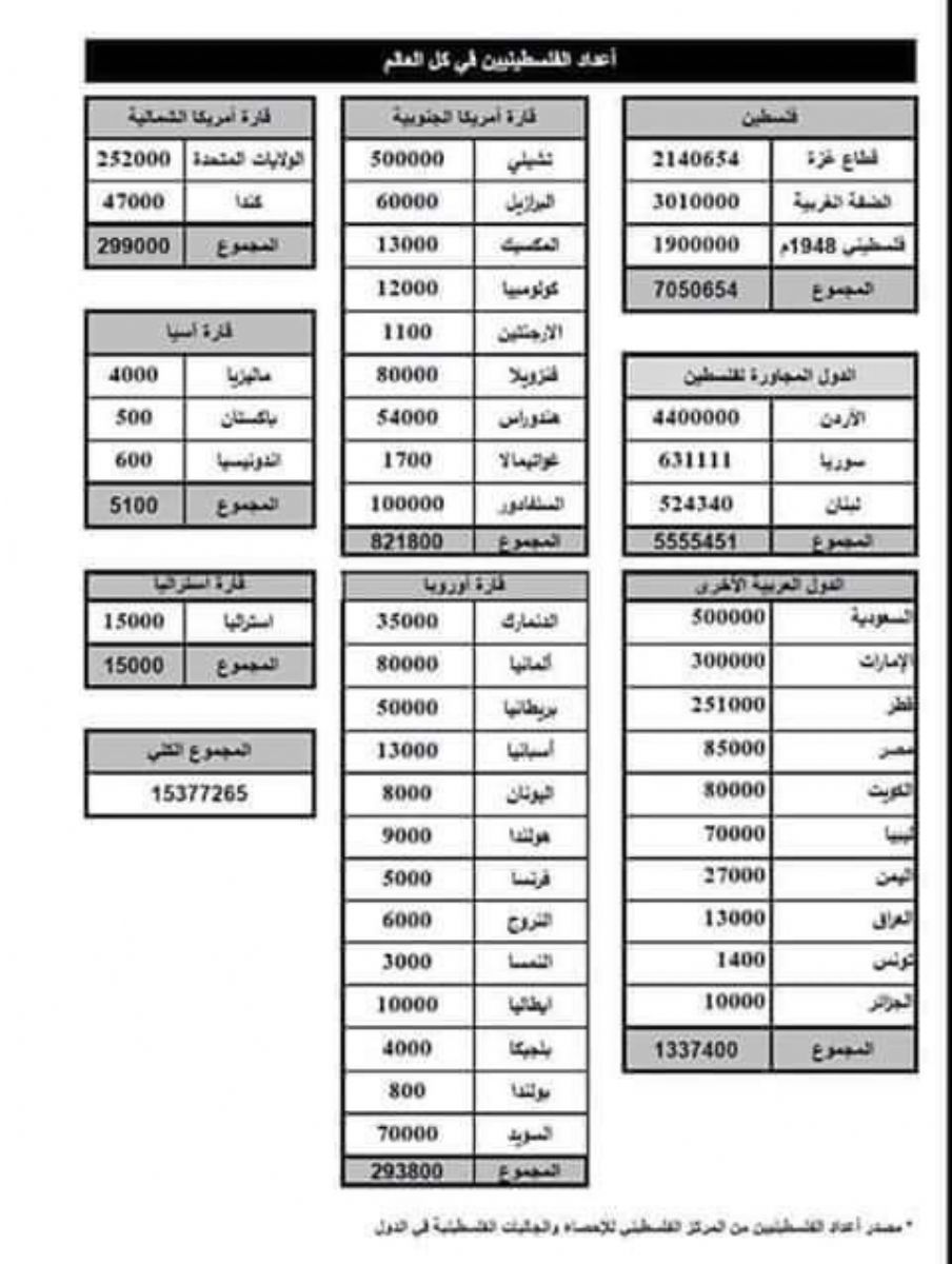 بالأرقام ..أعداد الفلسطينيين وأماكنهم بالعالم