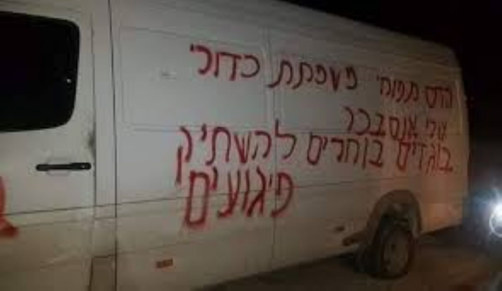 مستوطنون يخطون شعارات عنصرية ويعطبون مركبات شرق سلفيت