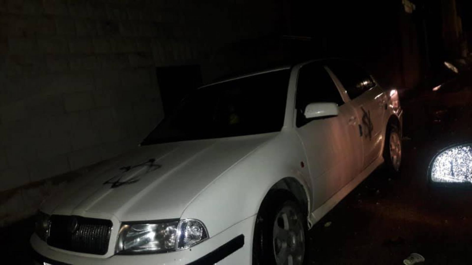 مستوطنون يعطبون مركبات ويخطون شعارات معادية بسلفيت